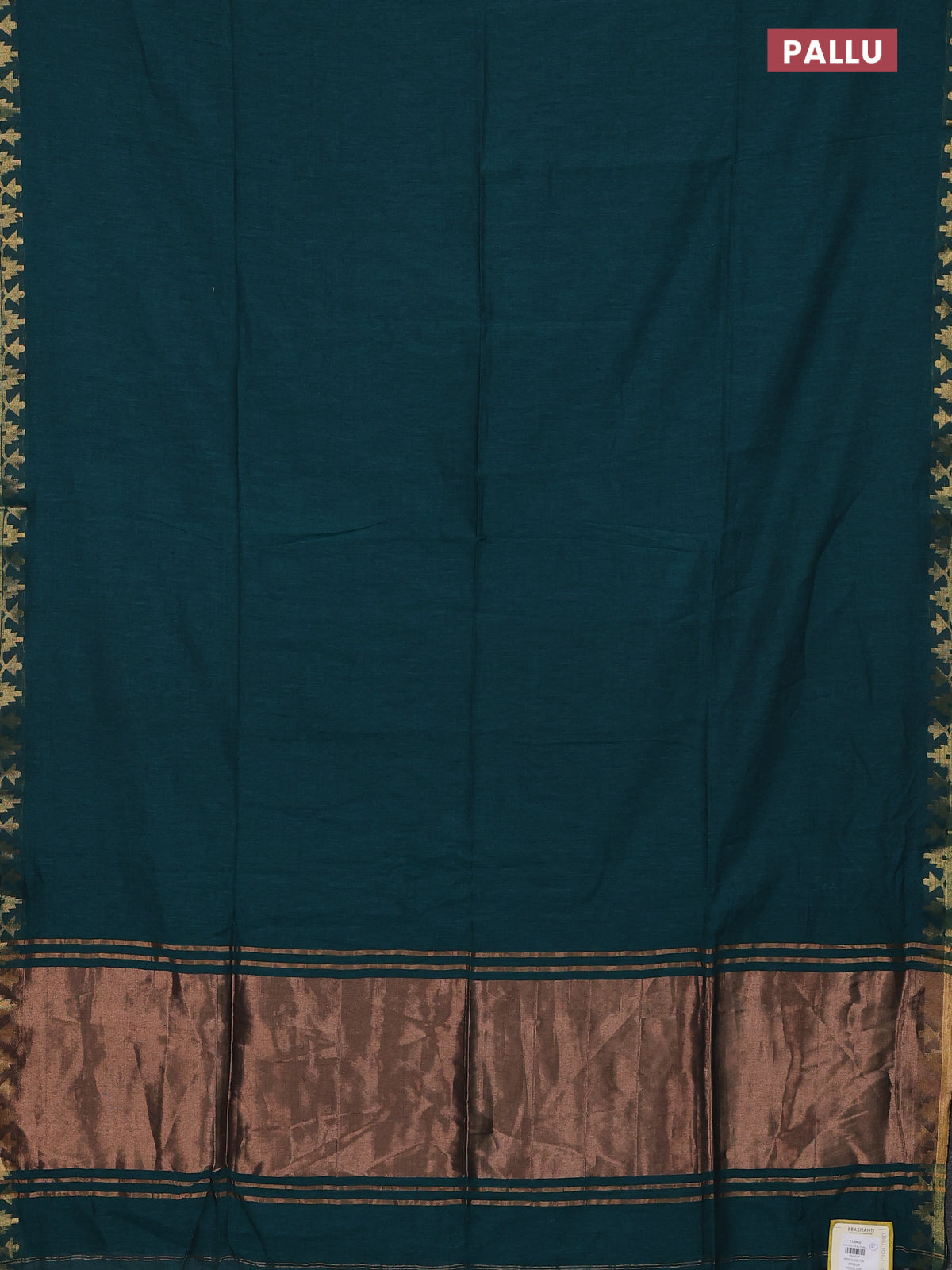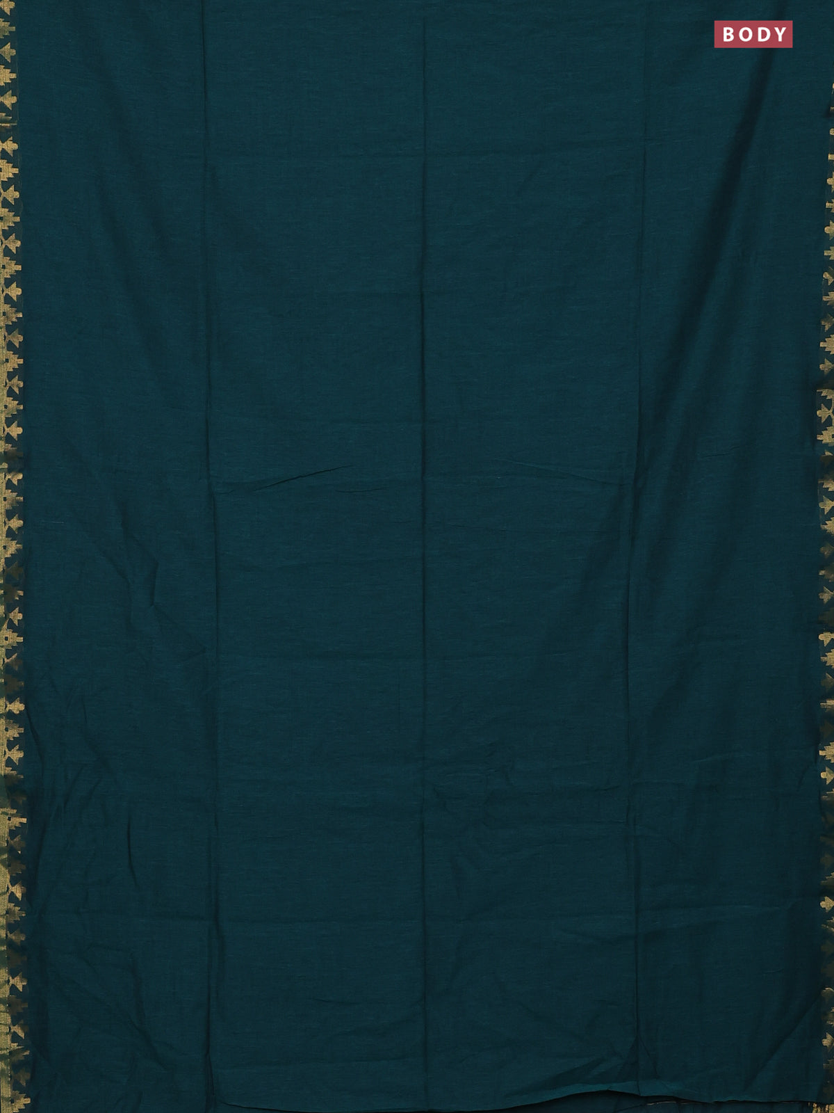Bengal soft cotton saree peacock green with plain body and zari woven border