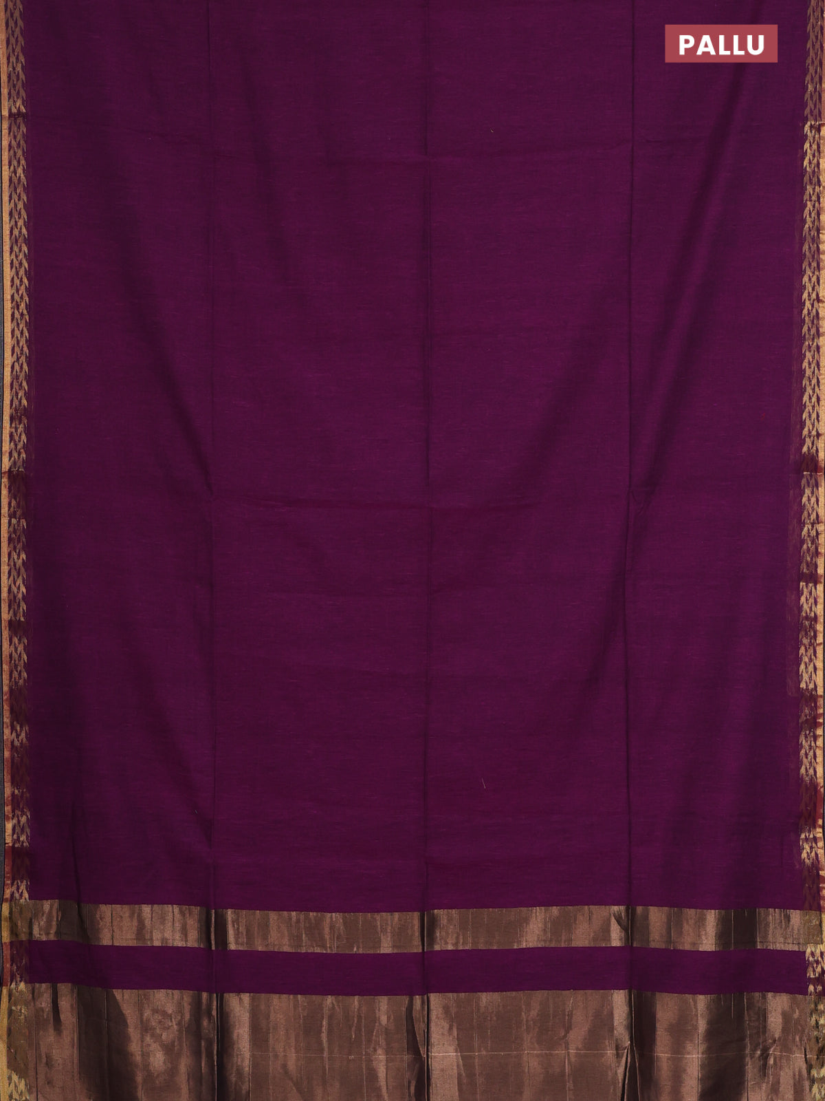 Bengal soft cotton saree purple and green with plain body and zari woven border