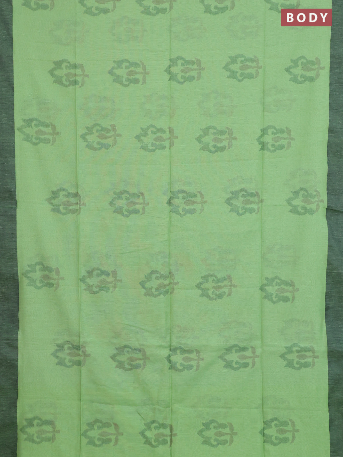 Bengal soft cotton saree teal green shade and black with allover butta weaves and simple border