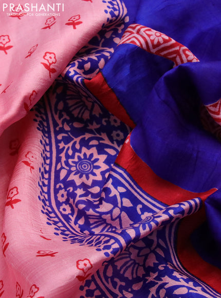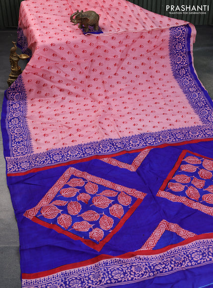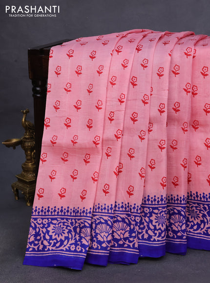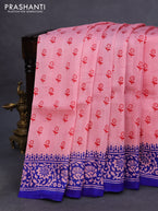 Bishnupuri silk saree peach pink and blue with floral butta prints and printed border