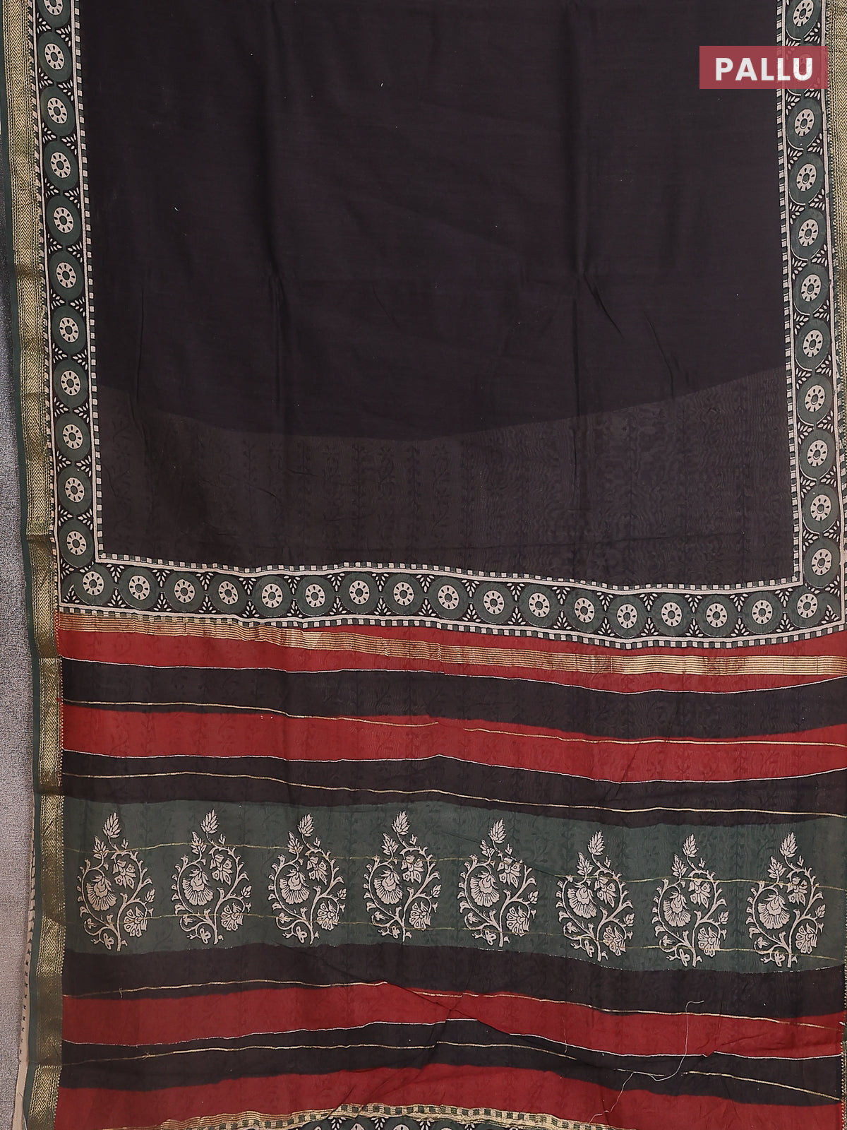Chanderi bagru saree black and beige with plain body and maheshwari border