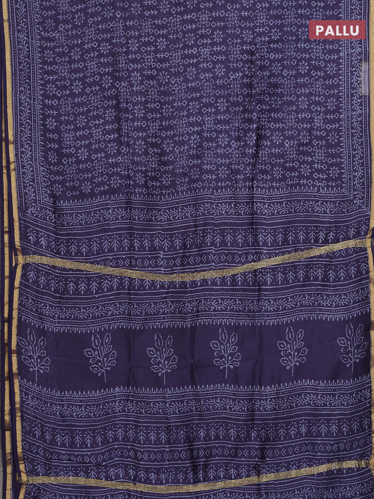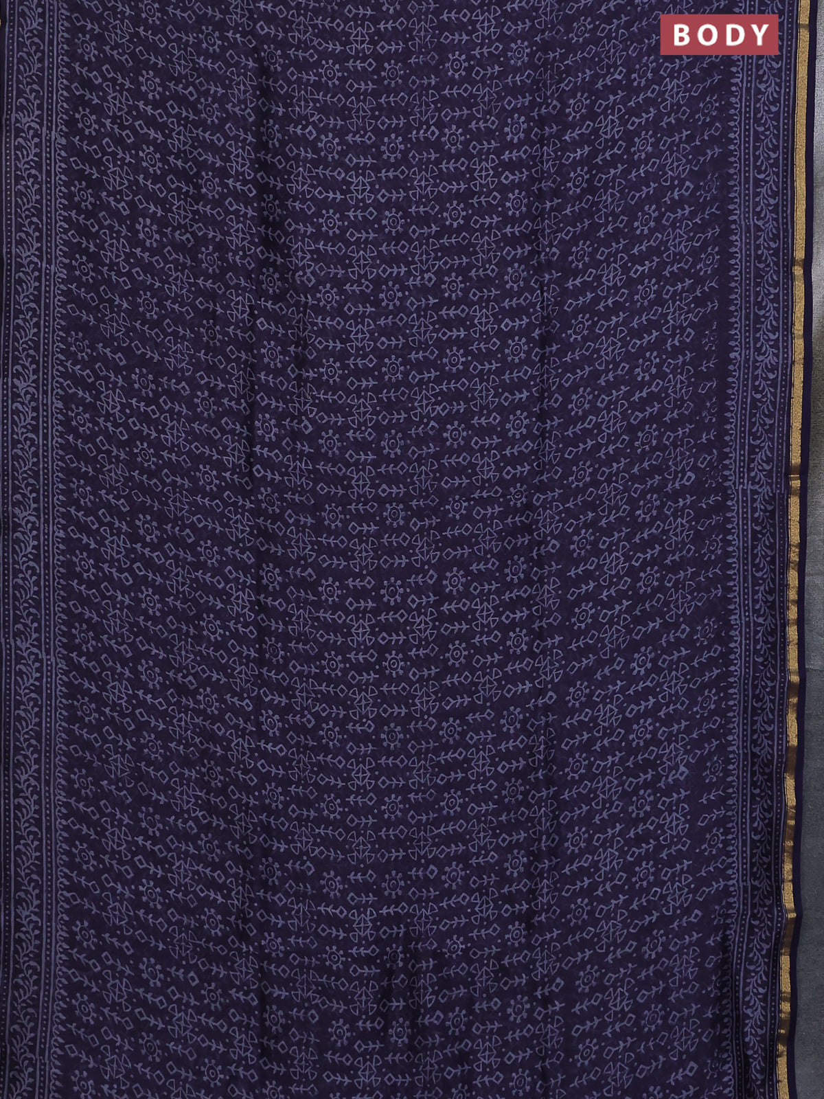 Chanderi bagru saree deep jamun shade with allover geometric prints and small zari woven border