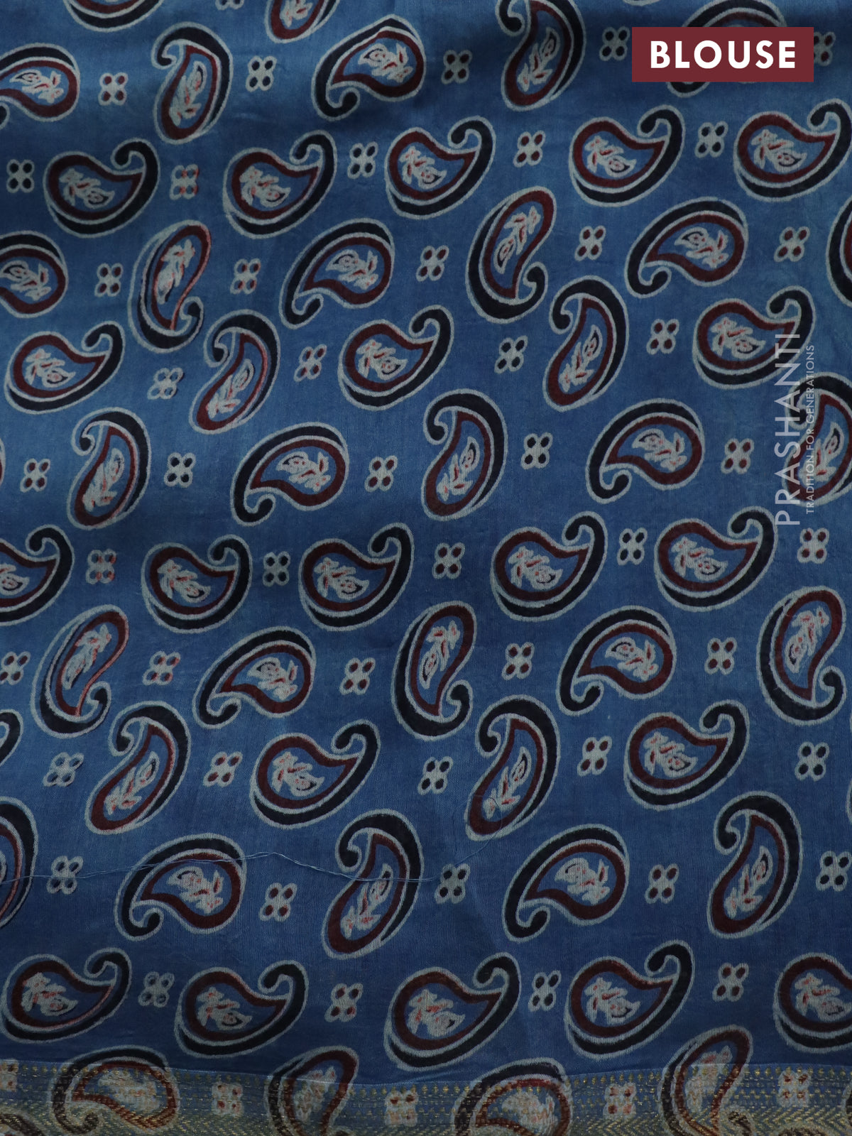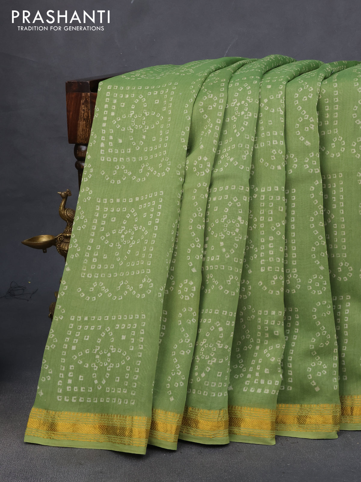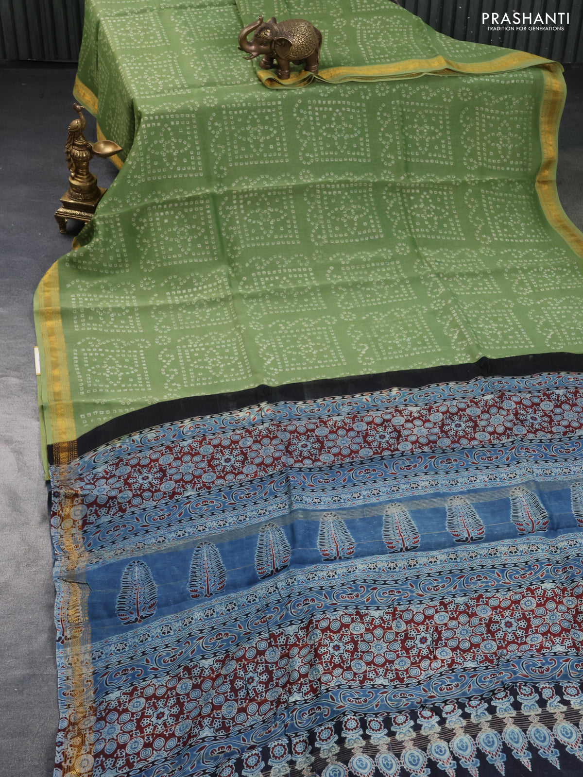 Chanderi bagru saree light green and blue with allover bandhani prints & ajrakh printed pallu and zari border & ajrakh printed pallu