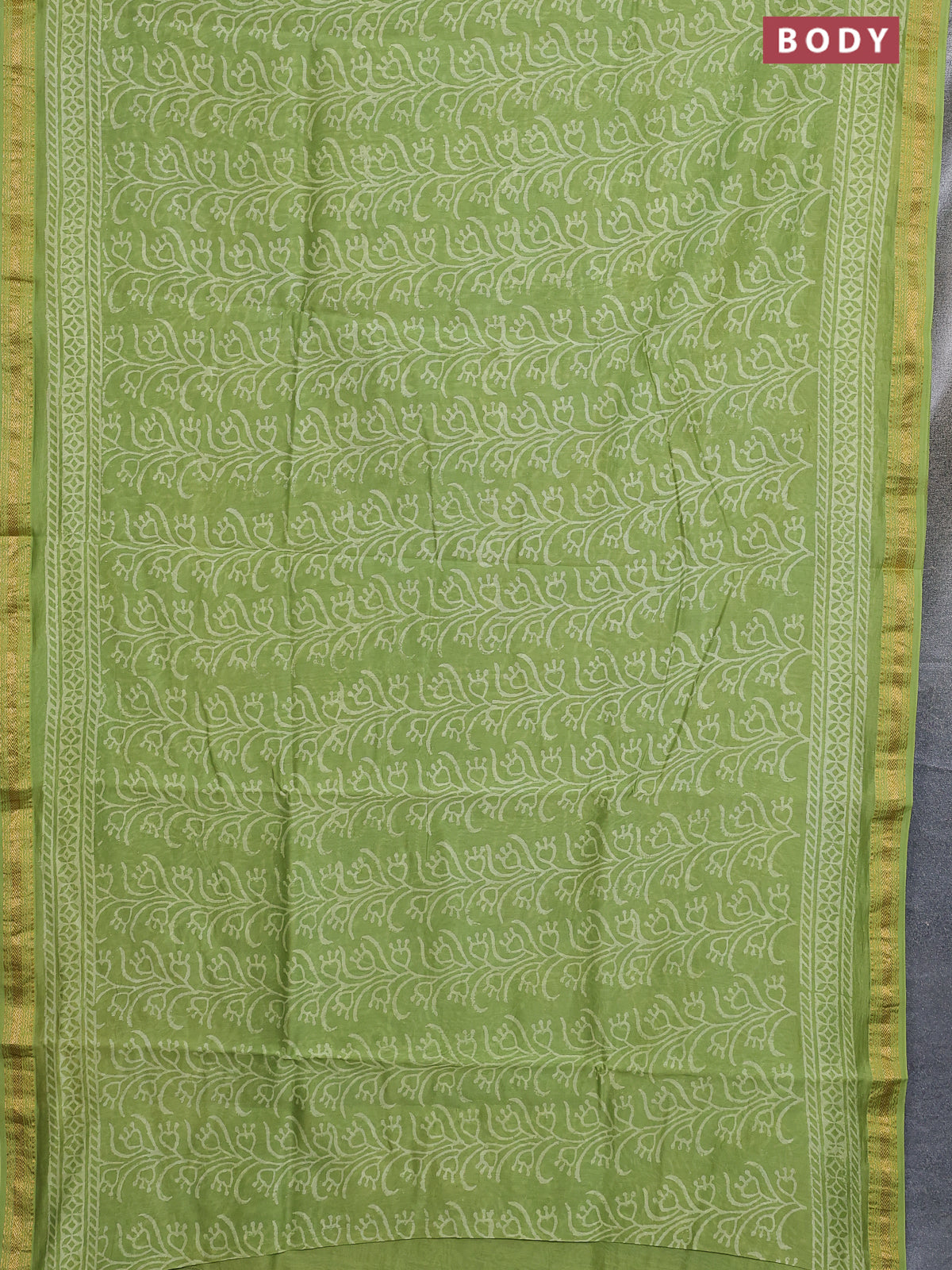 Chanderi bagru saree light green with allover prints and maheshwari border