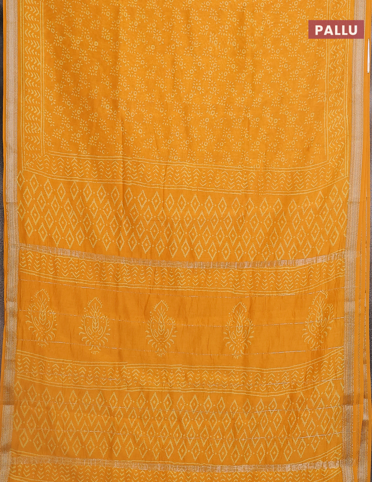 Chanderi bagru saree mango yellow with allover prints and maheshwari border