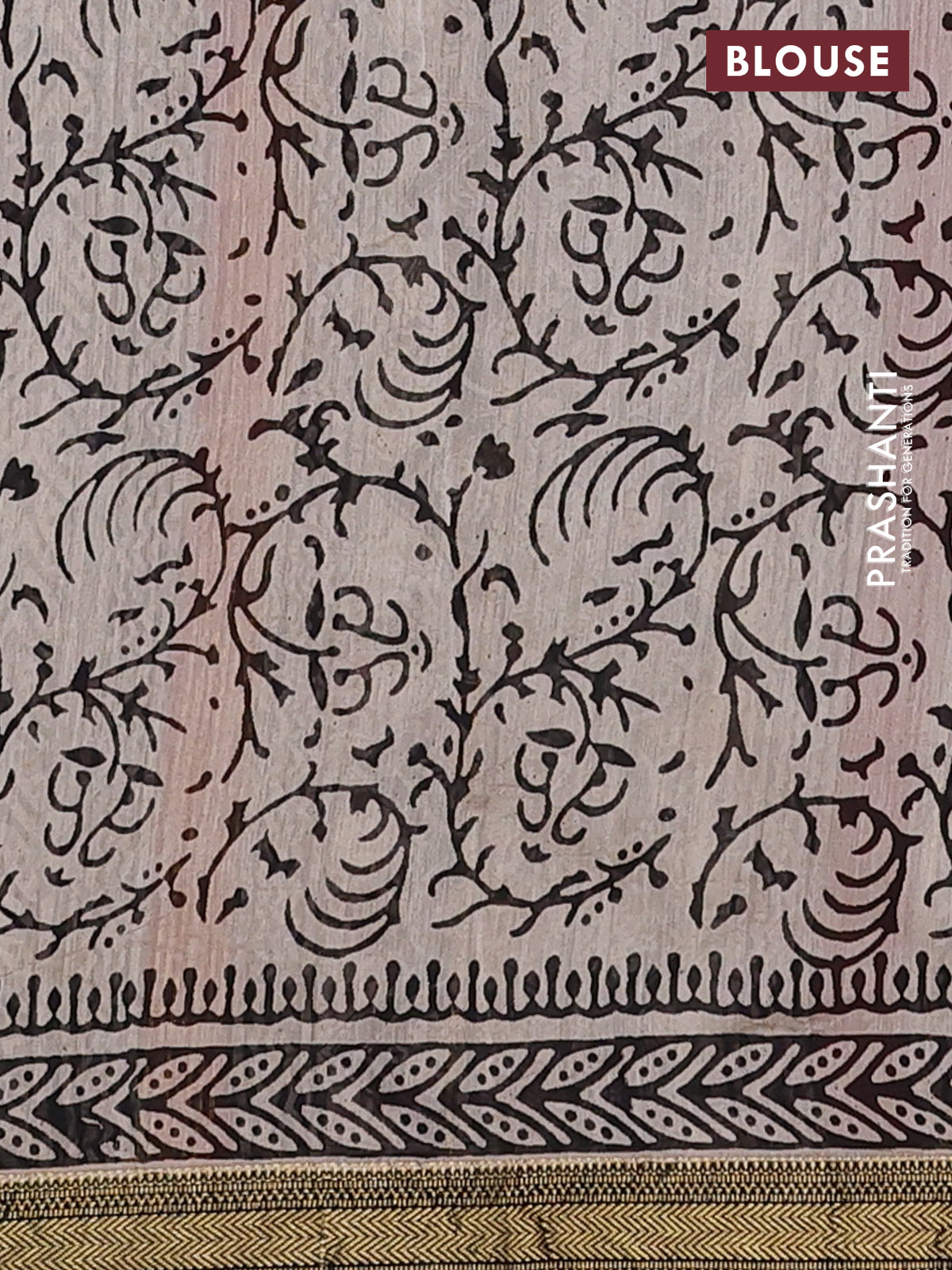 Chanderi bagru saree maroon and black with allover kalamkari prints and mageshwari border