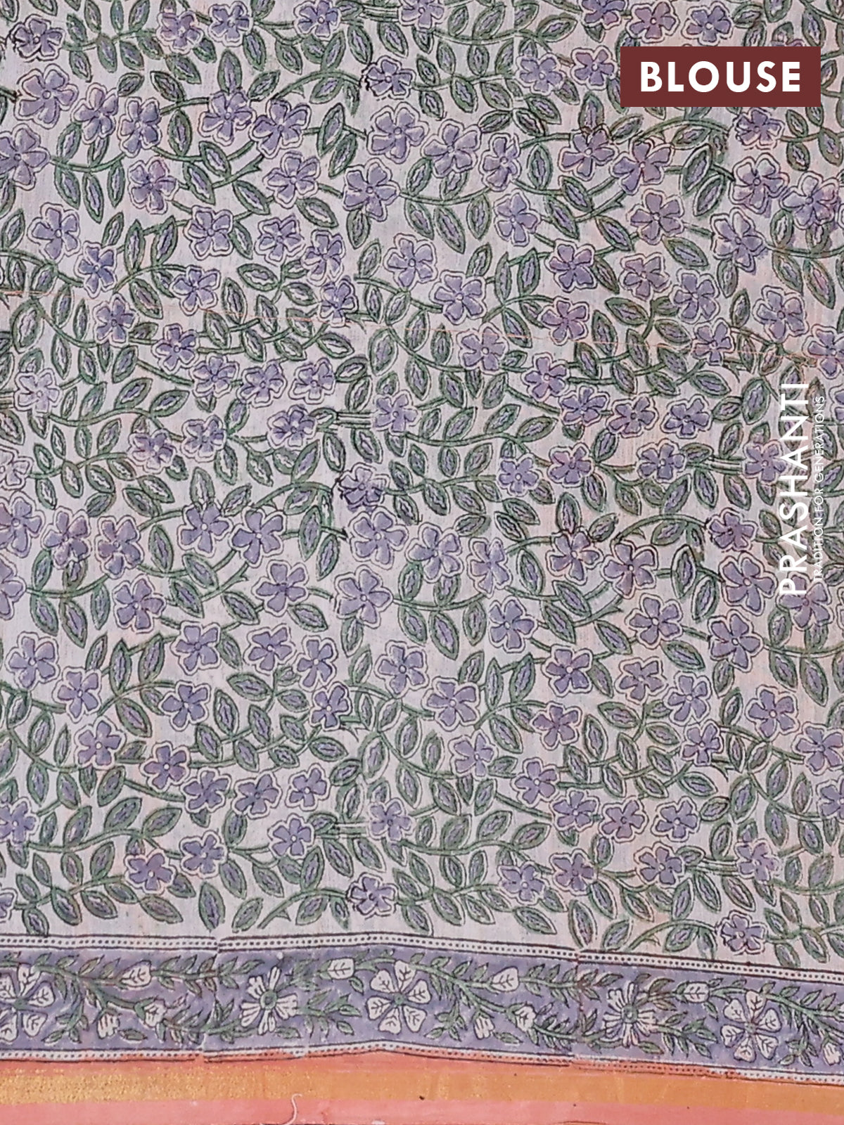 Chanderi bagru saree peach shade with allover floral prints and small zari woven border