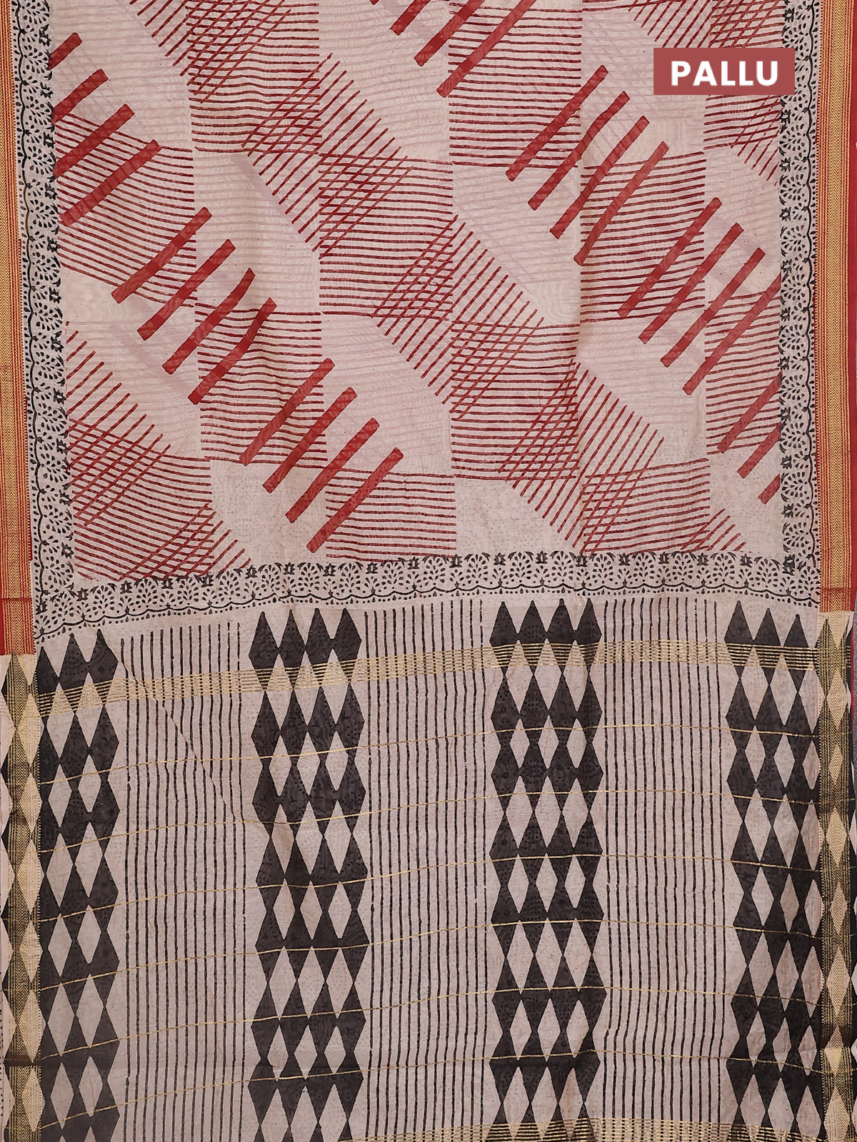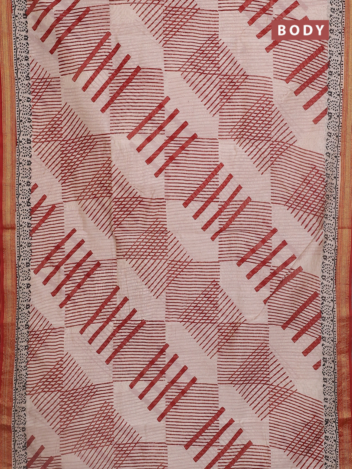 Chanderi bagru saree rust shade and beige with stripe pattern and maheshwari border