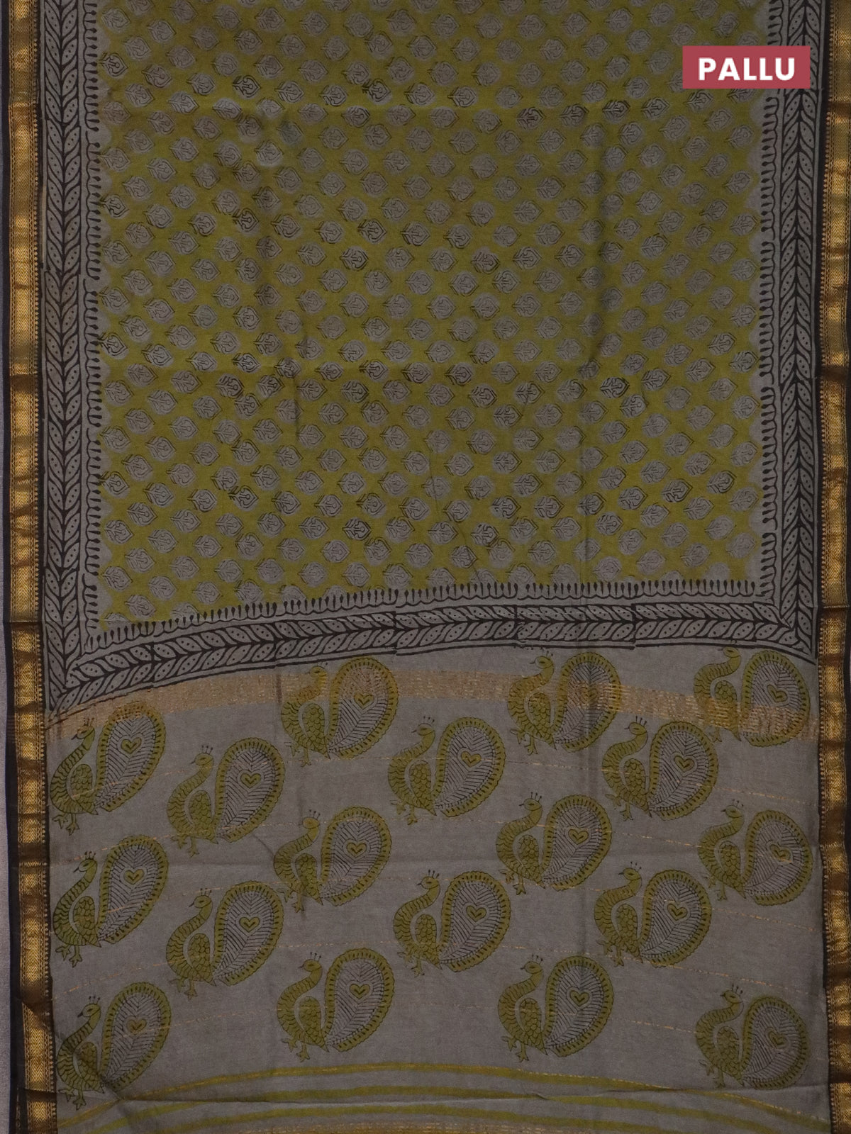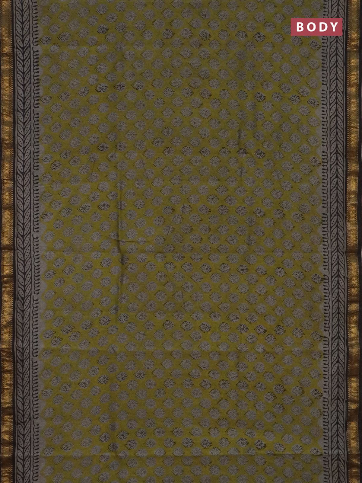 Chanderi bagru saree sap green and black with allover butta prints and maheshwari border
