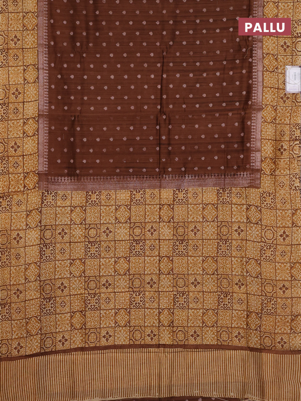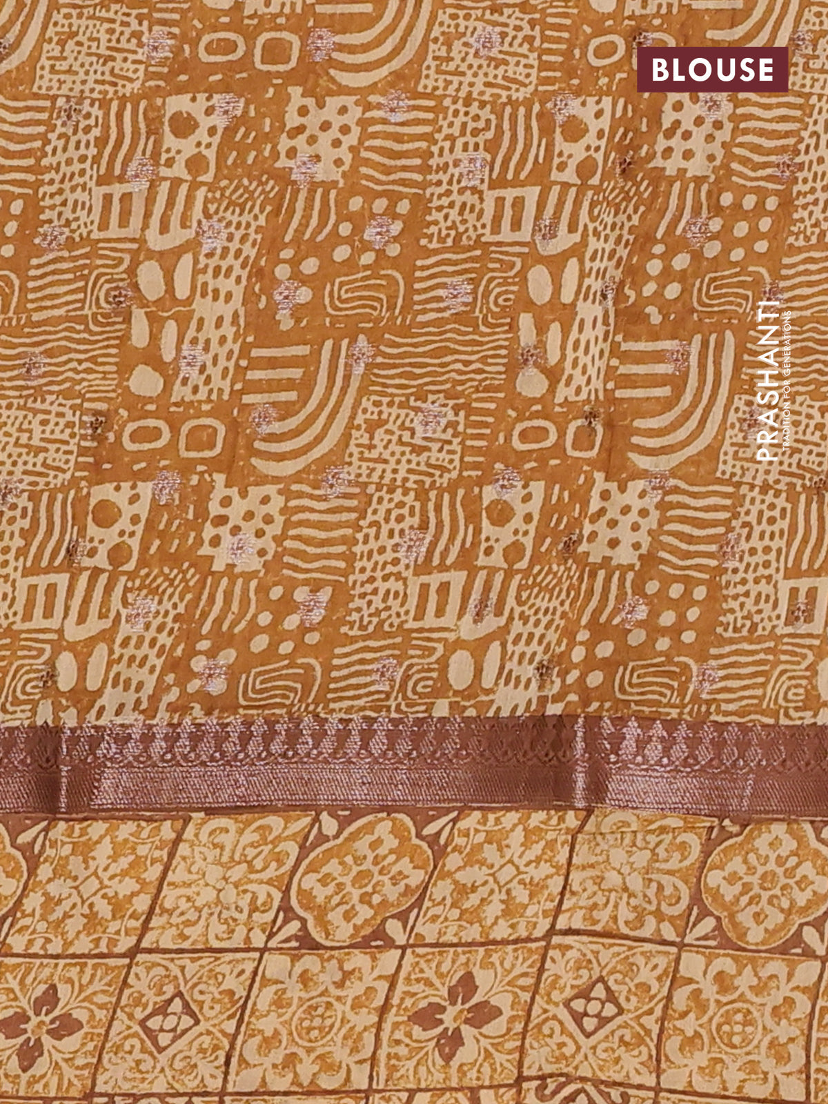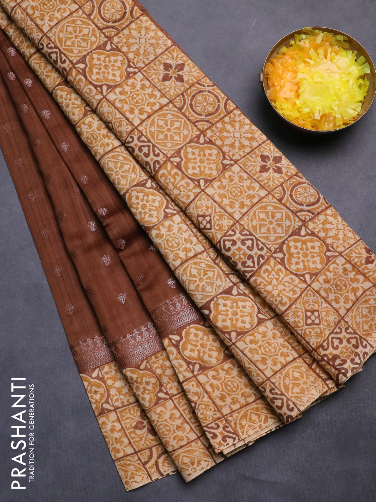 Chanderi silk cotton saree brown and beige with allover zari buttas and printed border