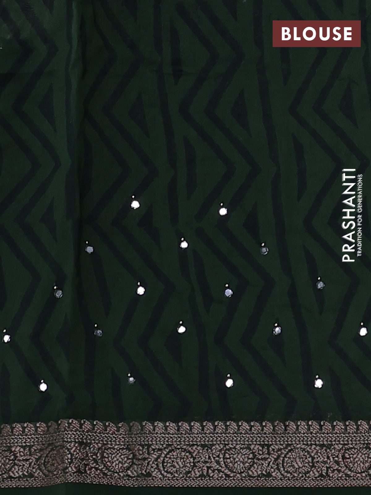 Chanderi silk cotton saree green with allover prints & mirror work and woven border