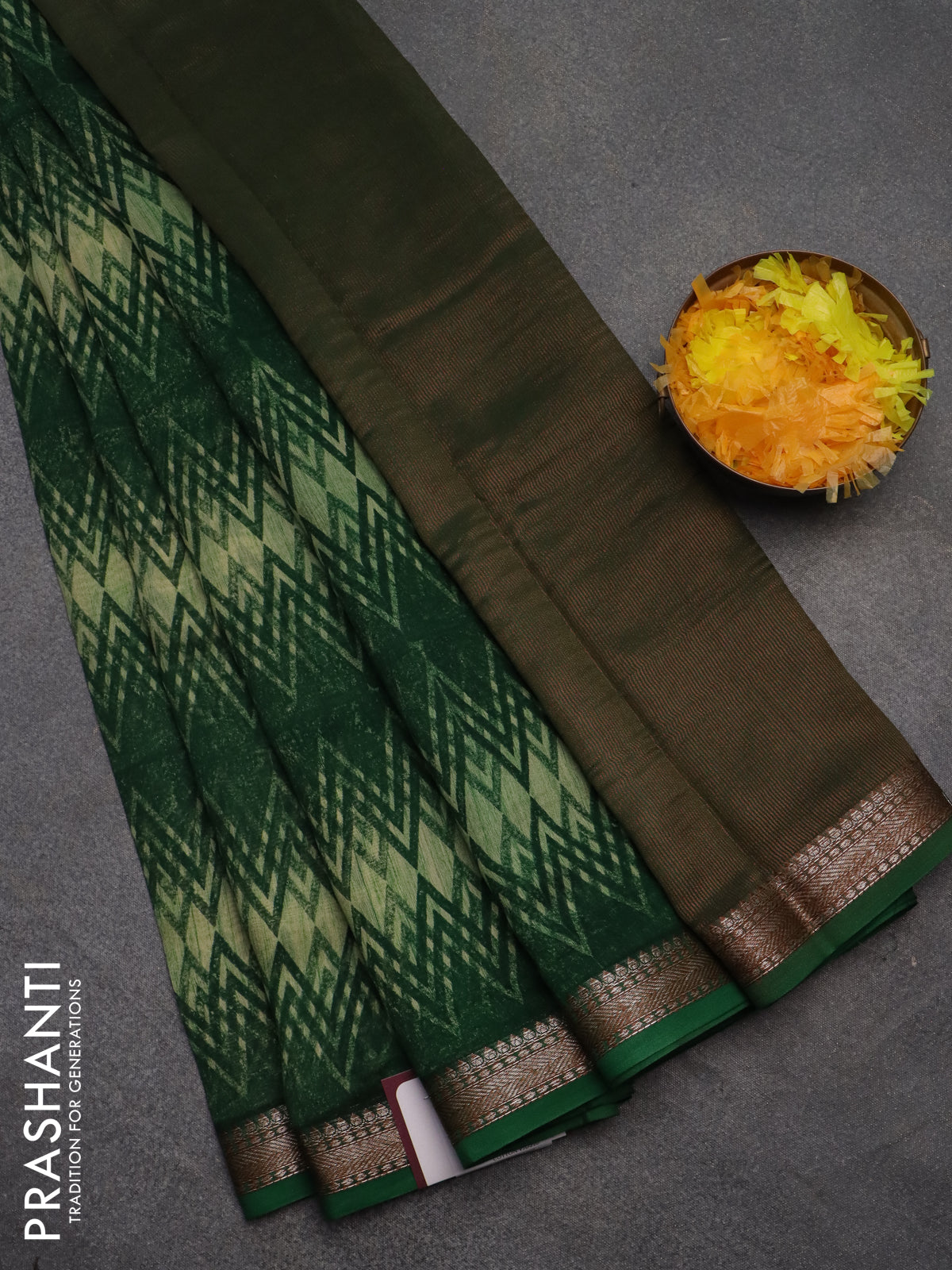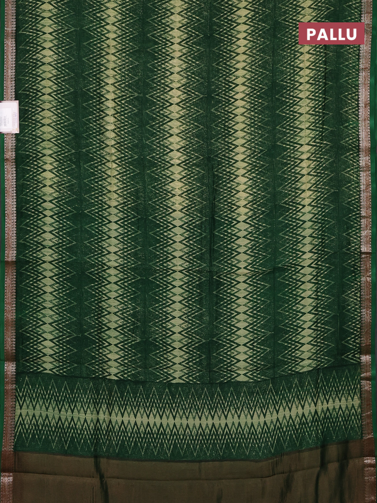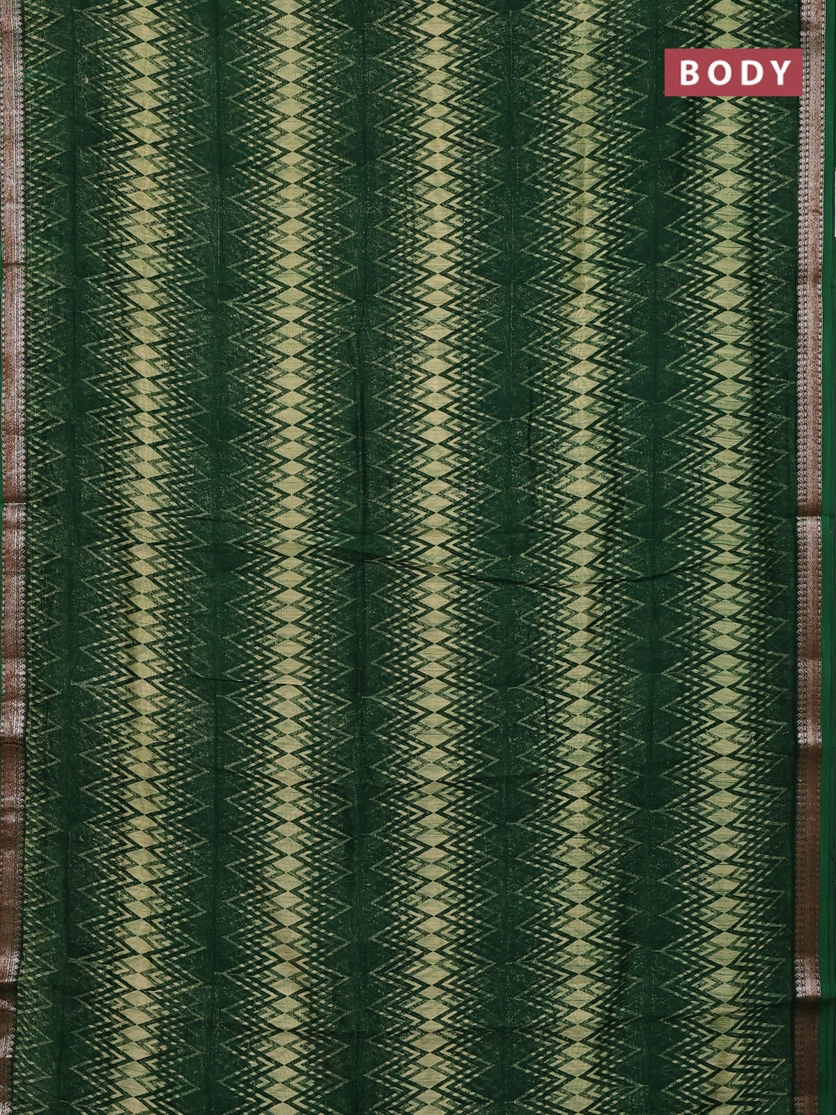 Chanderi silk cotton saree green with allover zig zag prints and banarasi style border