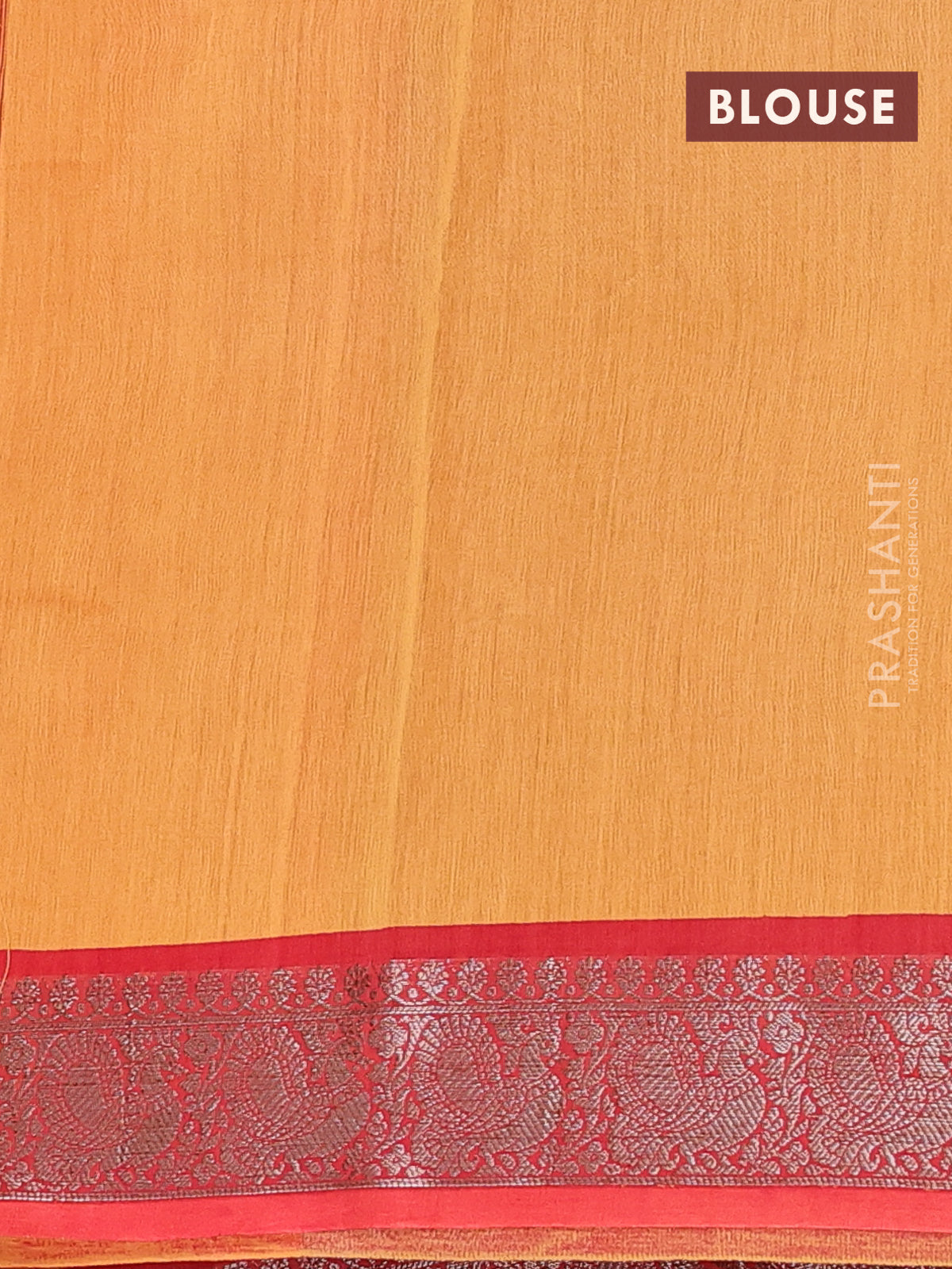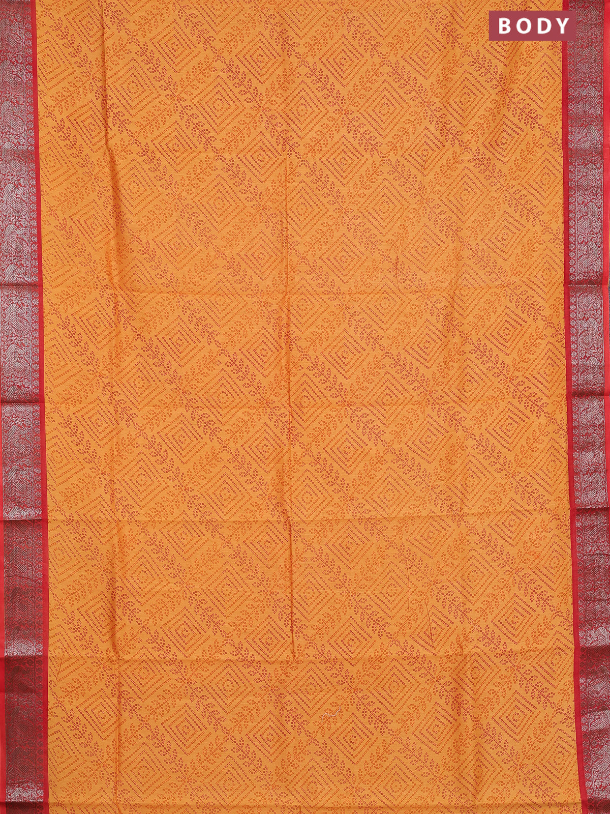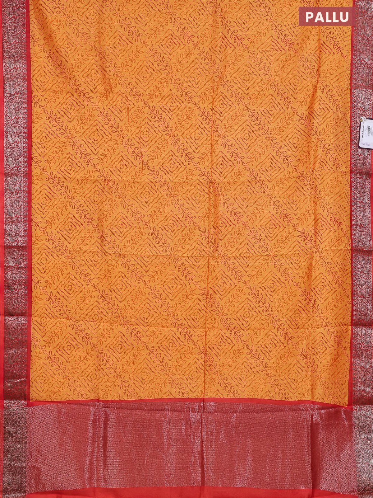 Chanderi silk cotton saree mango yellow and red with allover bandhini prints and banarsi style border
