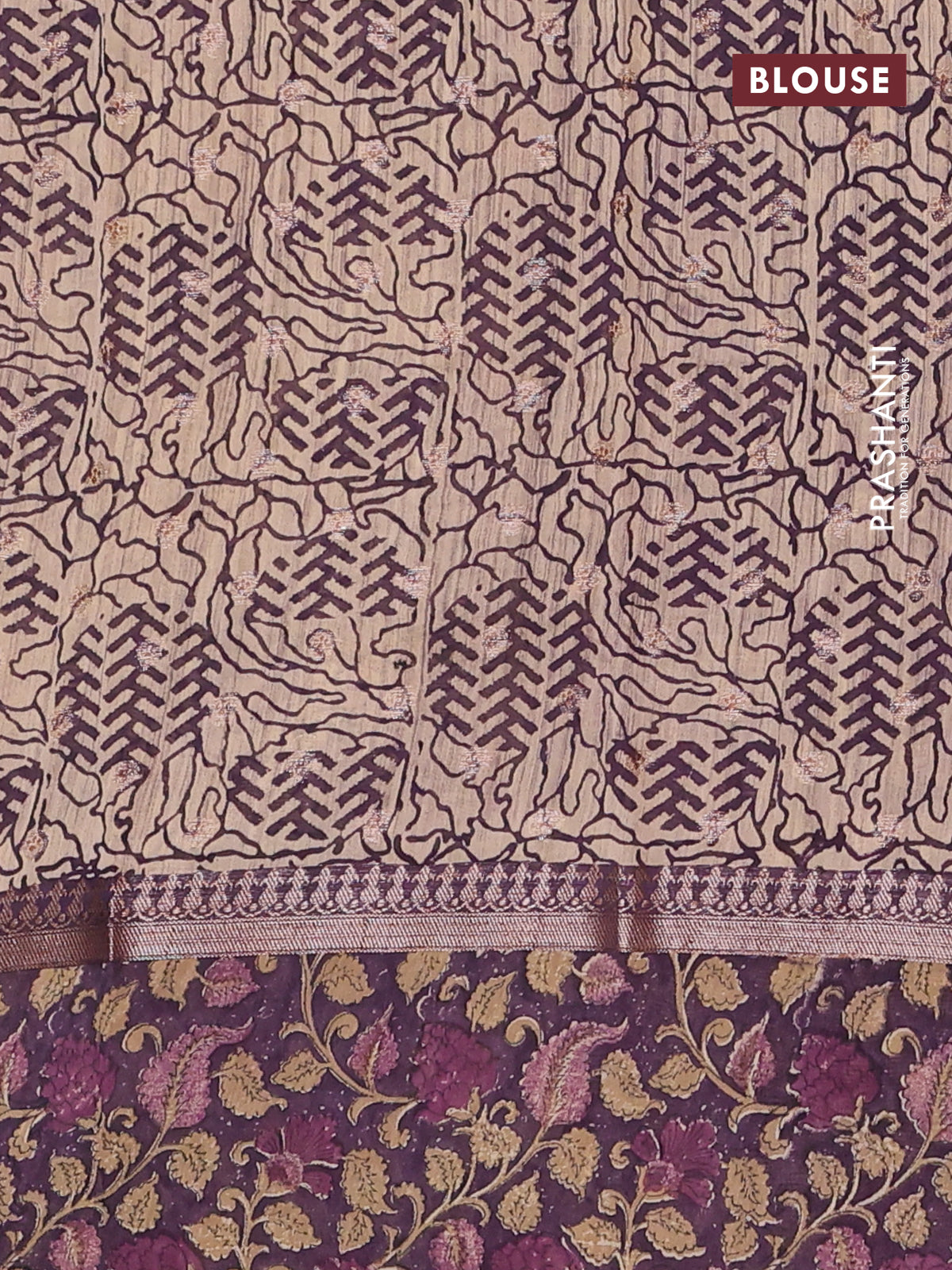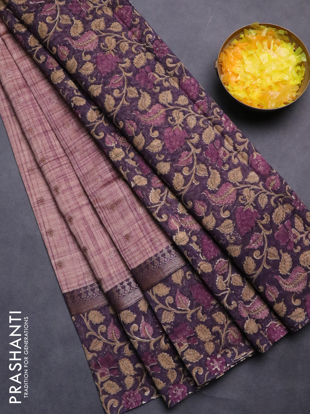 Chanderi silk cotton saree pastel purple and violet shade with allover zari buttas and printed border