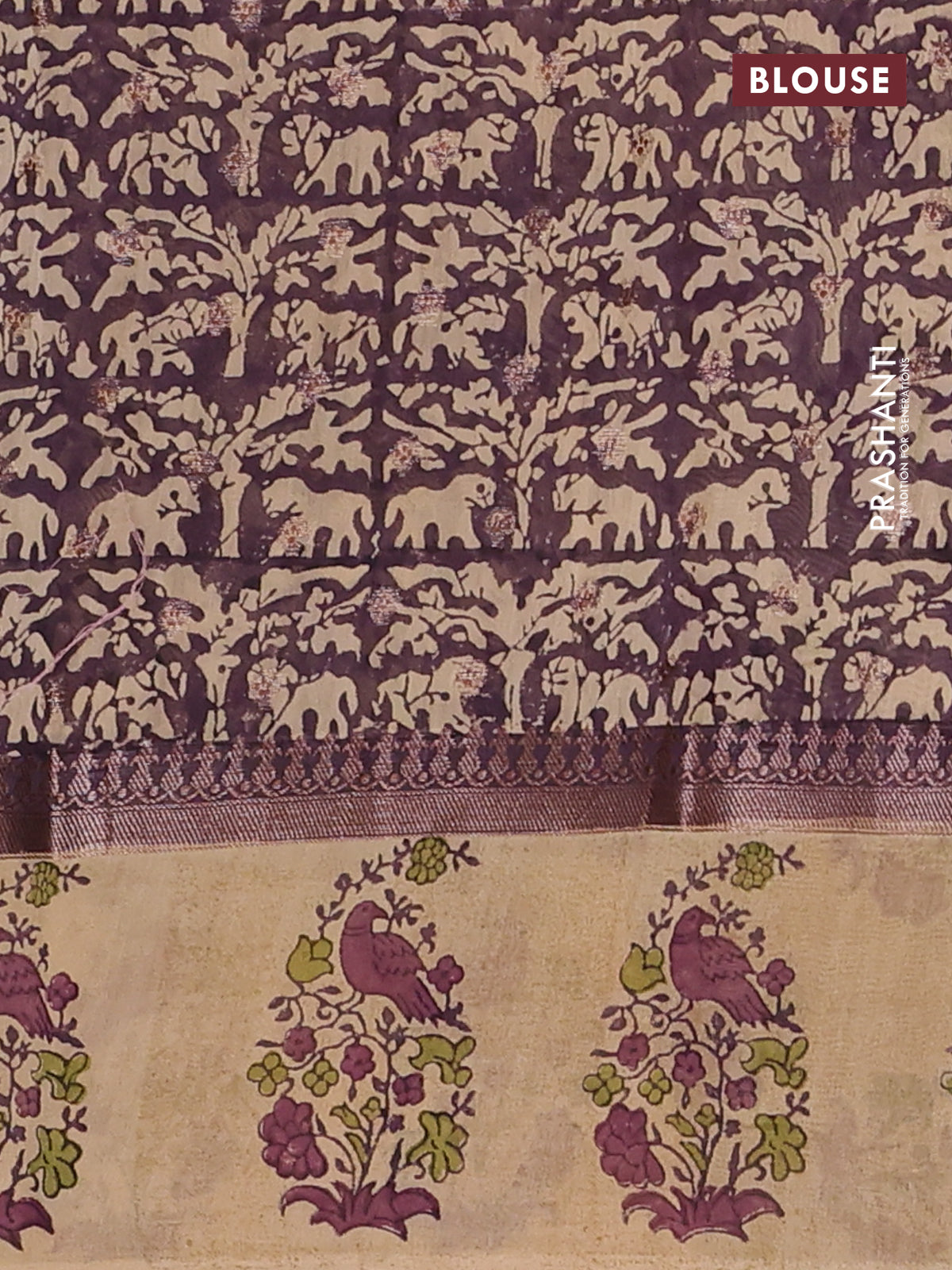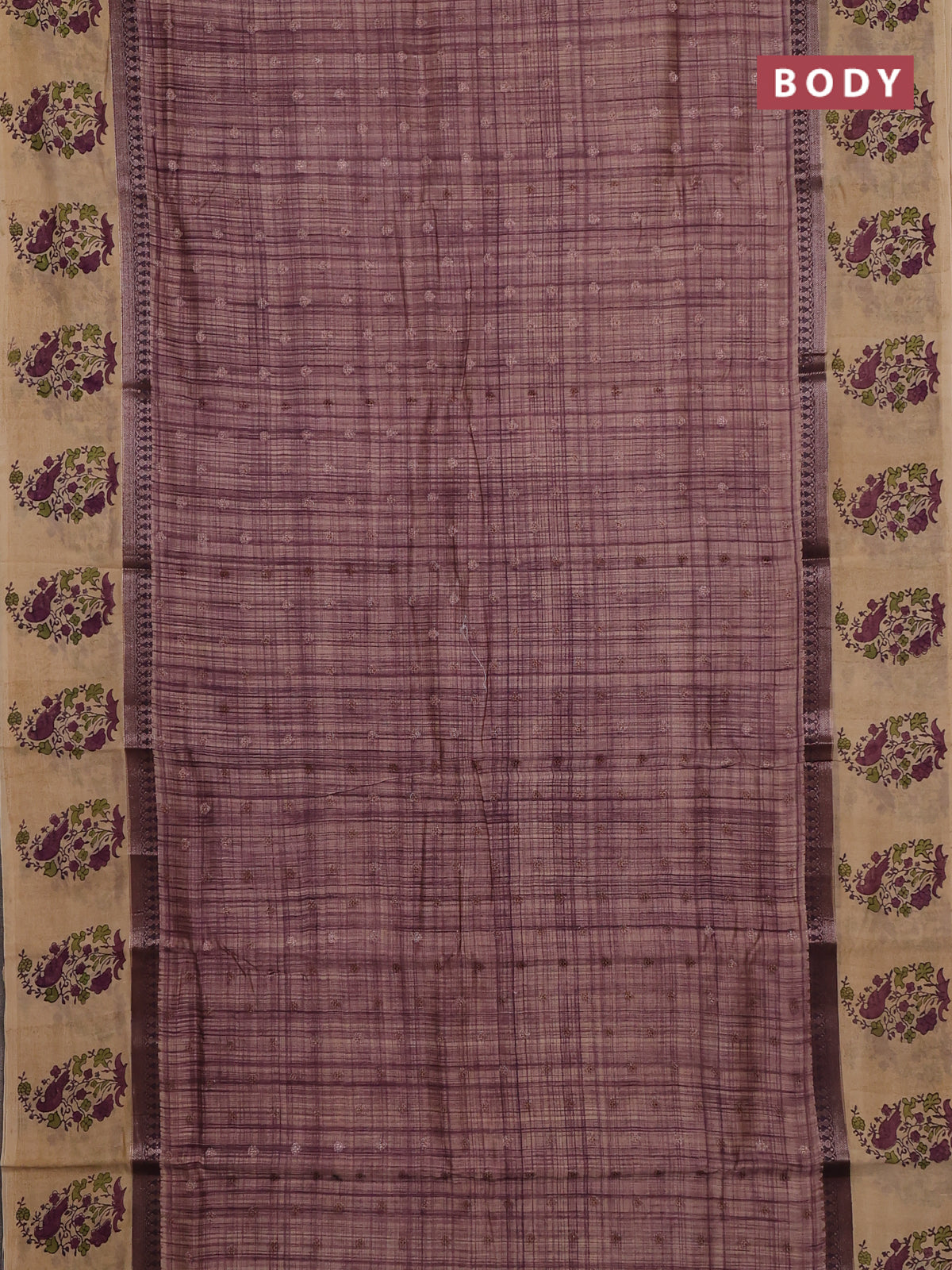Chanderi silk cotton saree purple shade and beige with allover zari buttas & prints and printed butta border