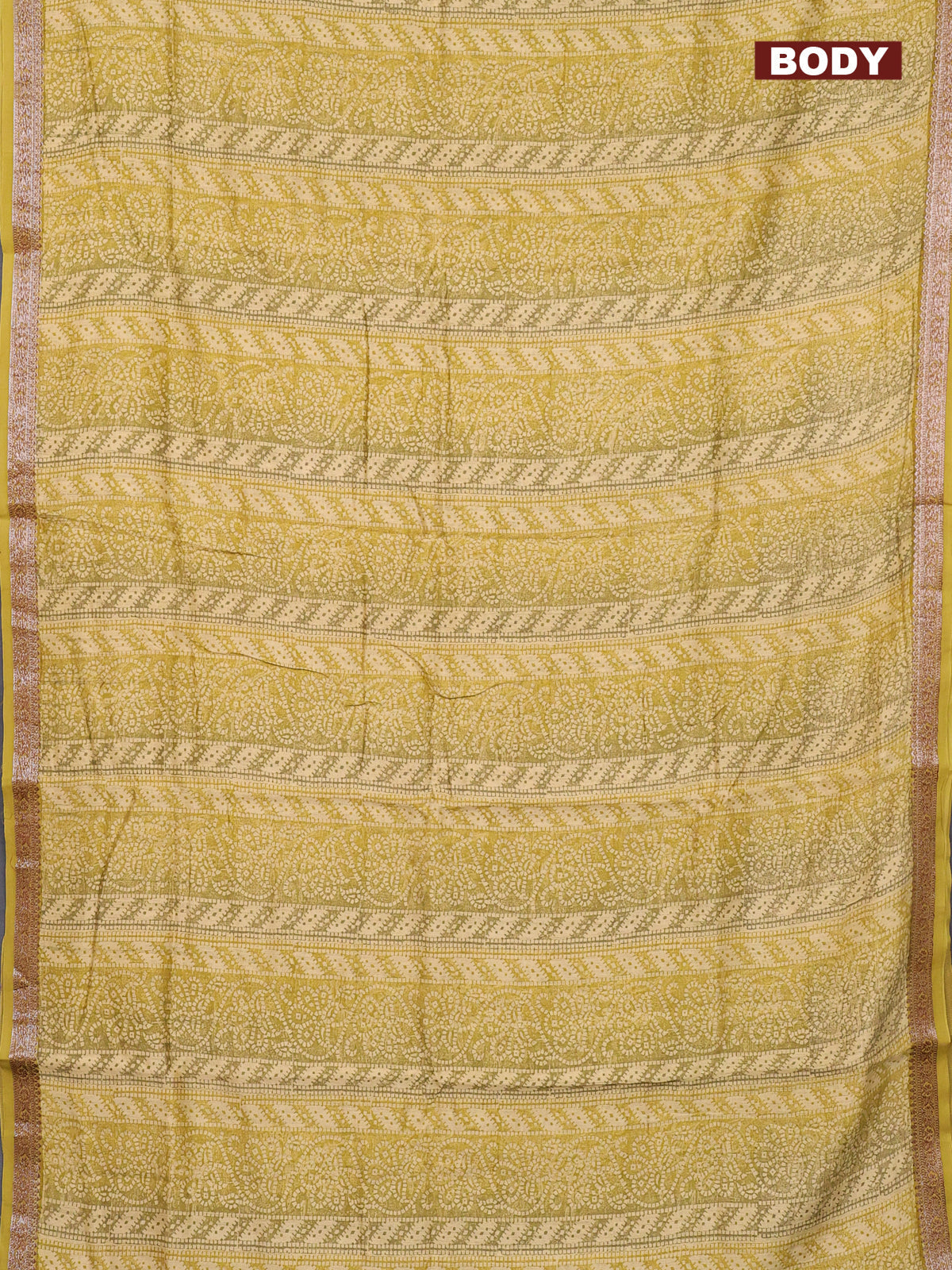 Chanderi silk cotton saree sandal mustard shade and green shade with allover prints and banarasi style border