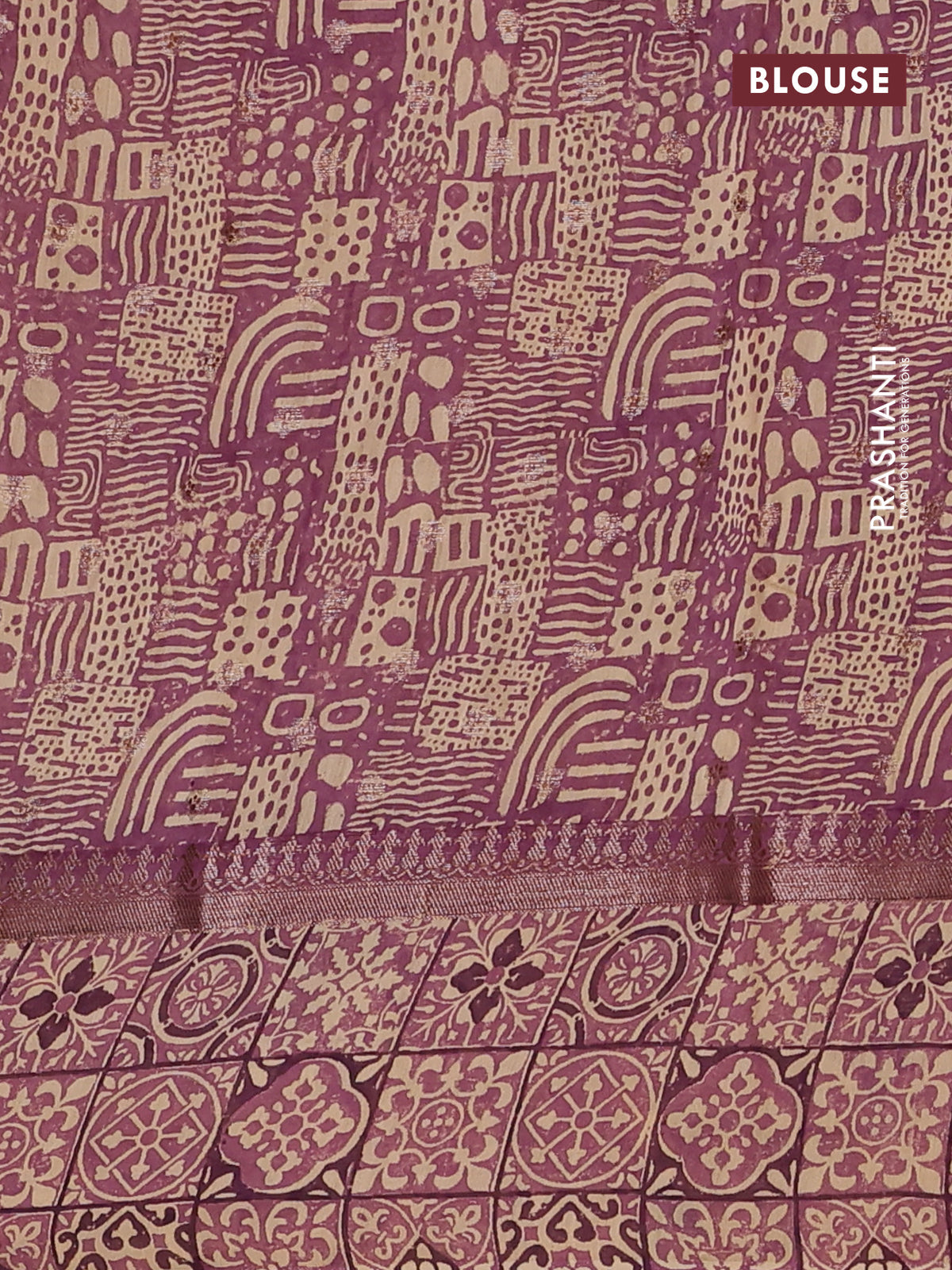 Chanderi silk cotton saree wine shade and beige with allover zari buttas and printed border