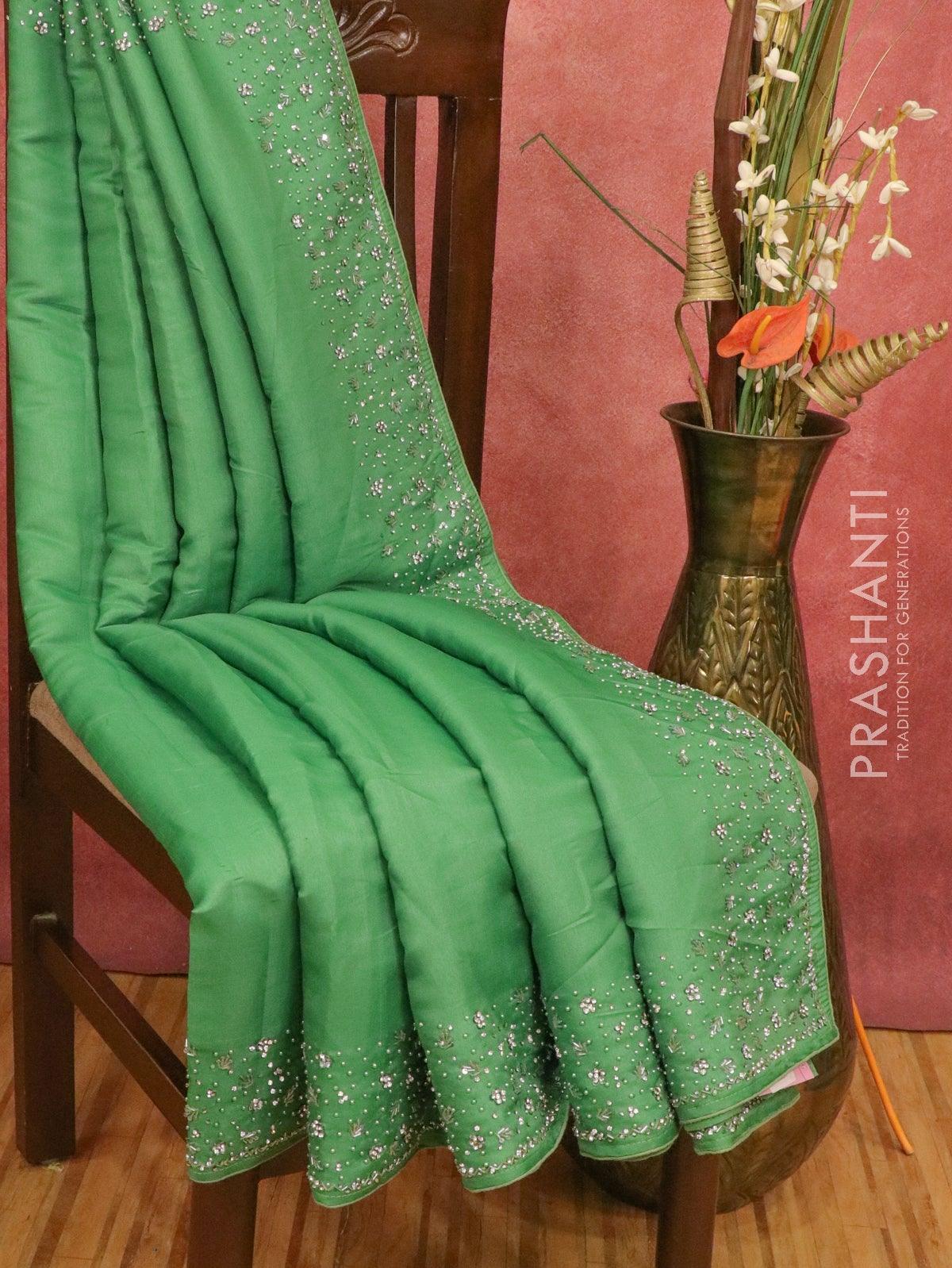 Chappa saree green with stone & beaded embroidery work