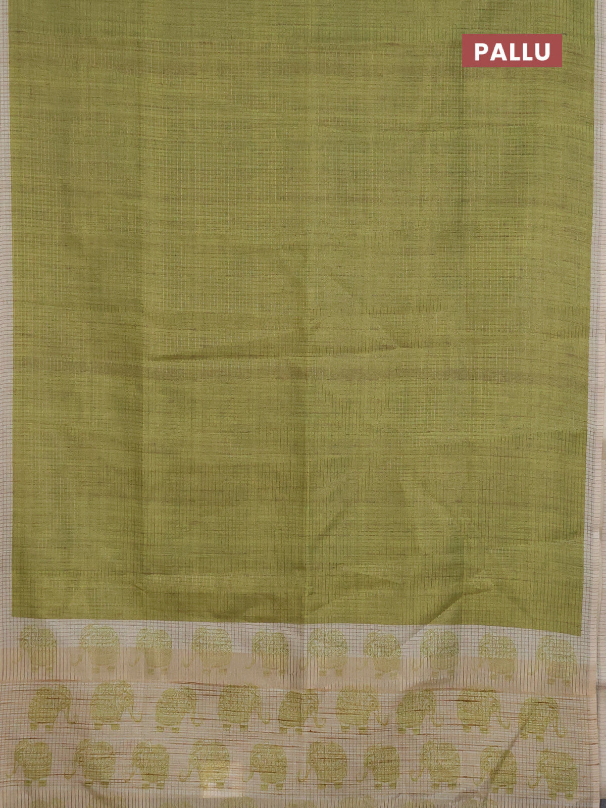 Chappa saree light green and beige with allover small zari checked pattern and elephant butta prints