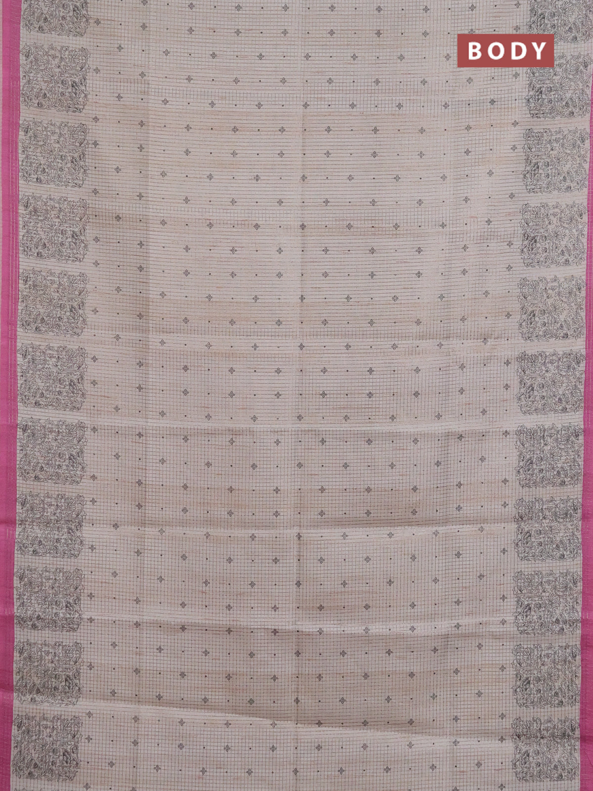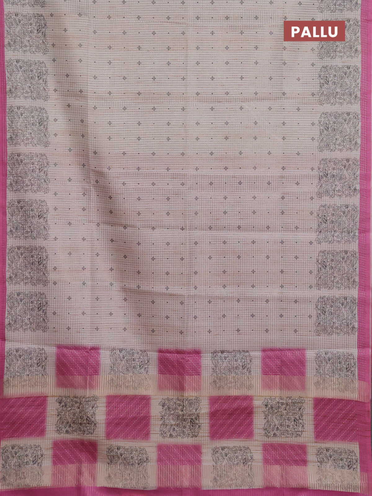 Chappa saree pastel grey and magenta pink with allover small zari checked pattern & butta prints and printed border