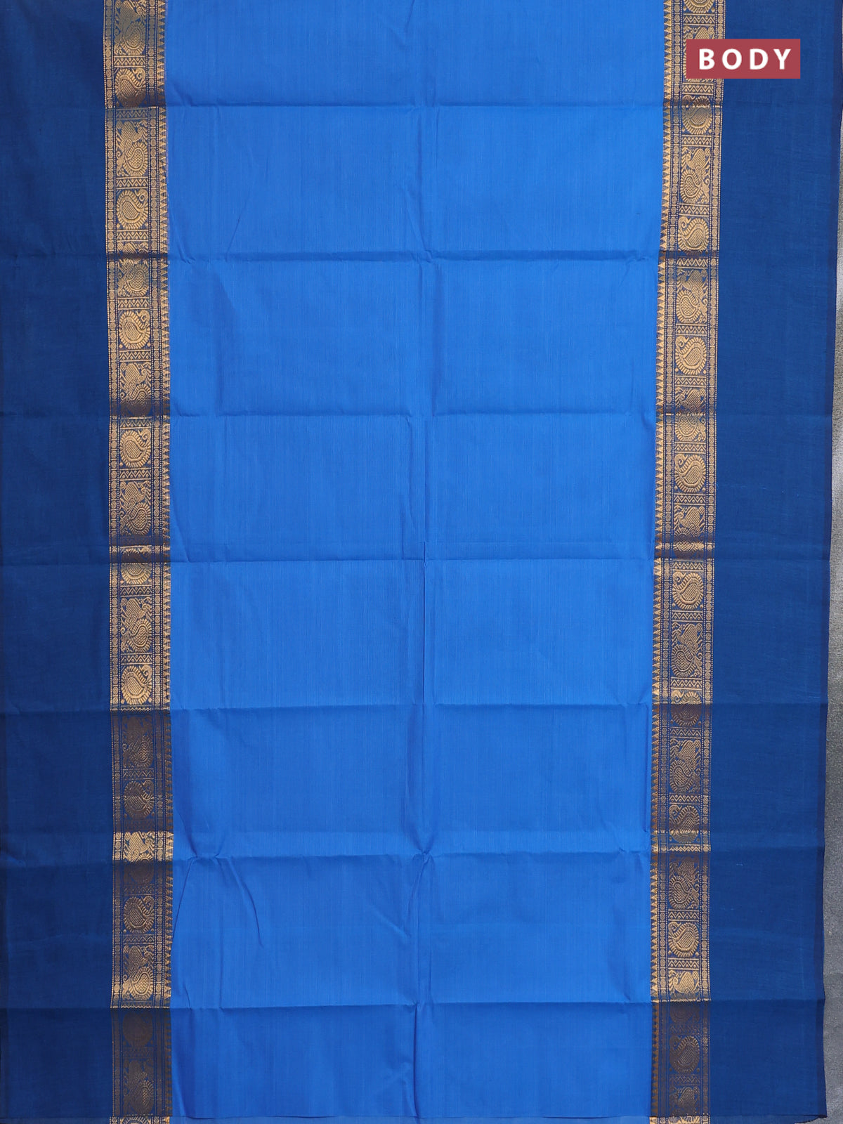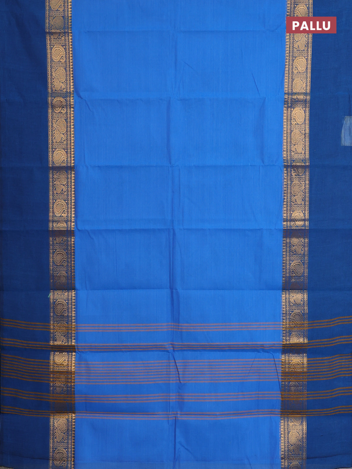 Chettinad cotton saree blue and peacock blue with plain body and zari woven simple border