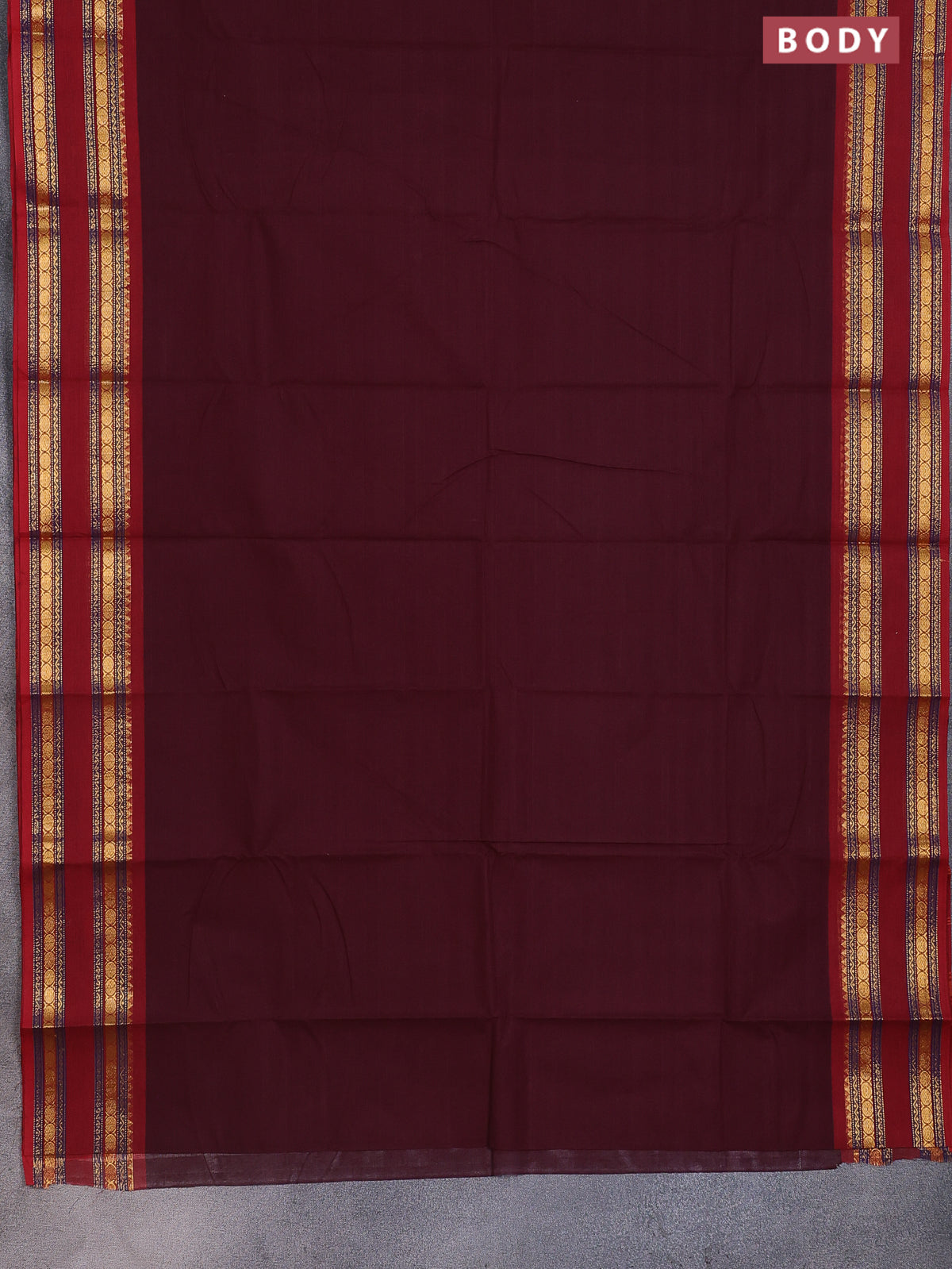 Chettinad cotton saree brown and maroon with thread woven buttas and rattapet zari woven border
