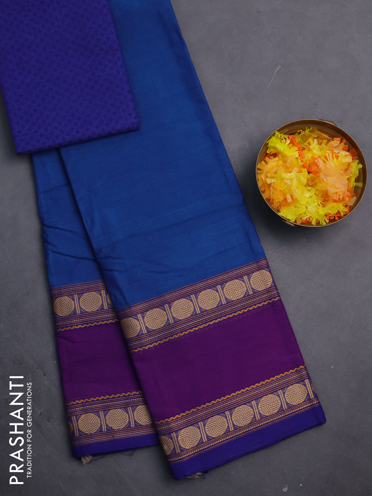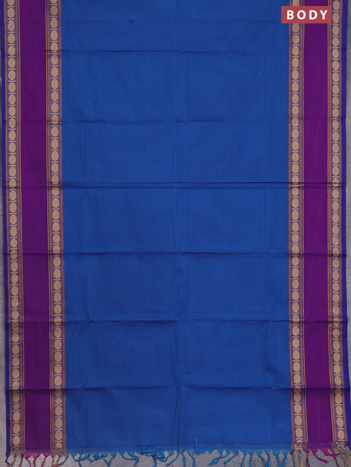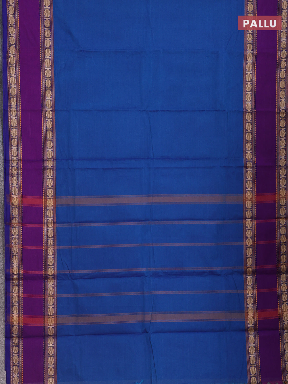 Chettinad cotton saree cs blue and blue with plain body and rettapet thread woven border