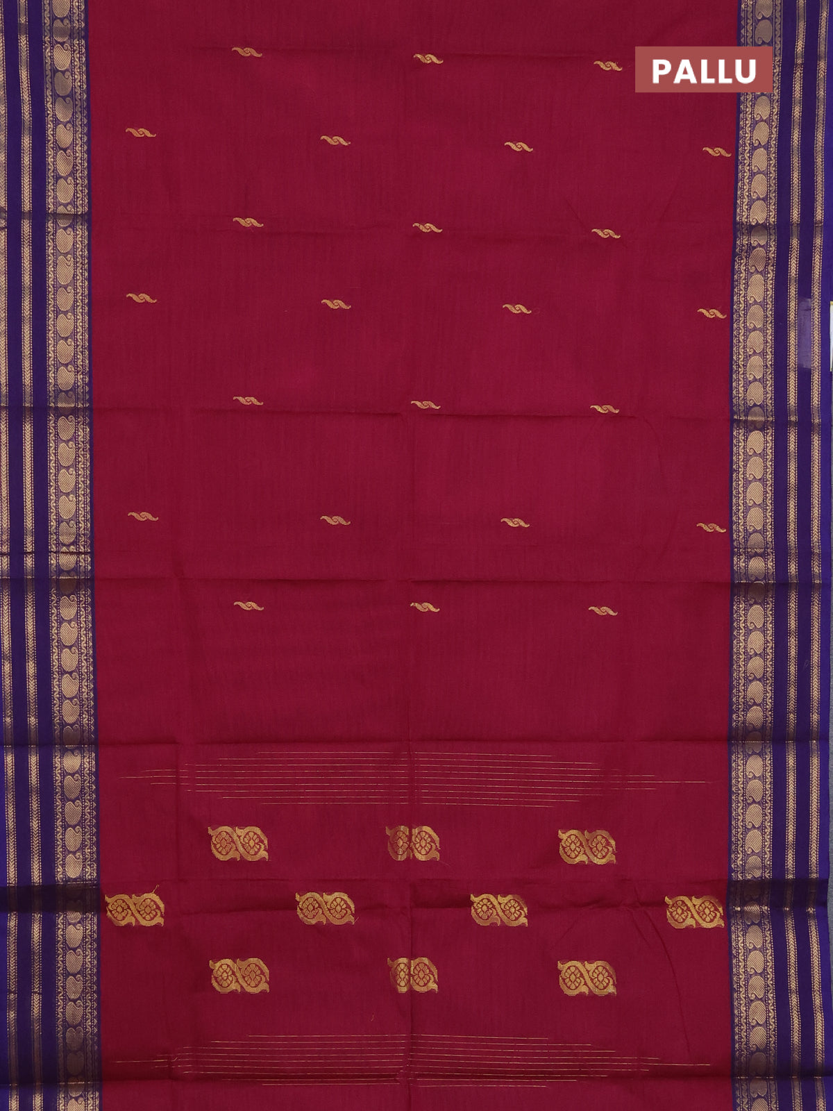 Chettinad cotton saree dark pink and voilet with thread woven buttas and temple disign zari woven border