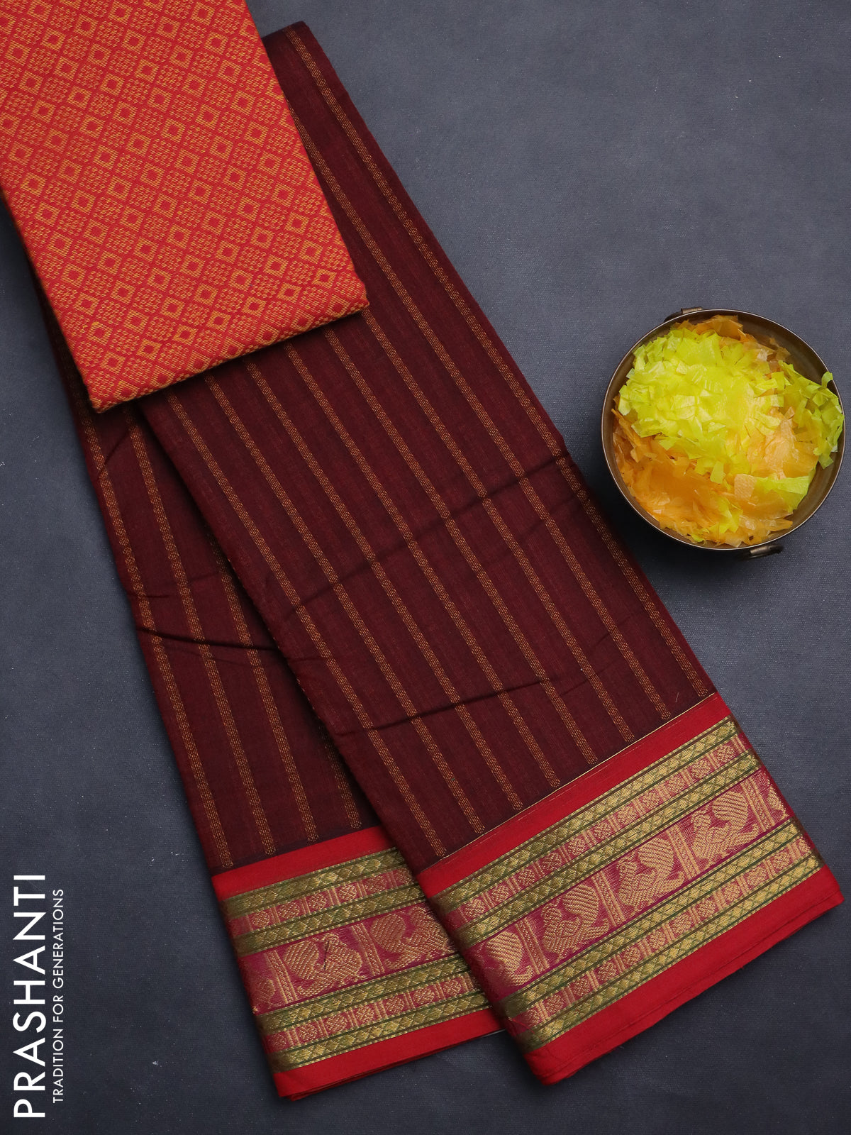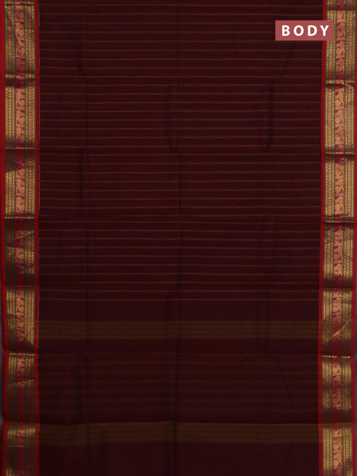 Chettinad cotton saree deep maroon and red with allover thread weaves and zari woven border