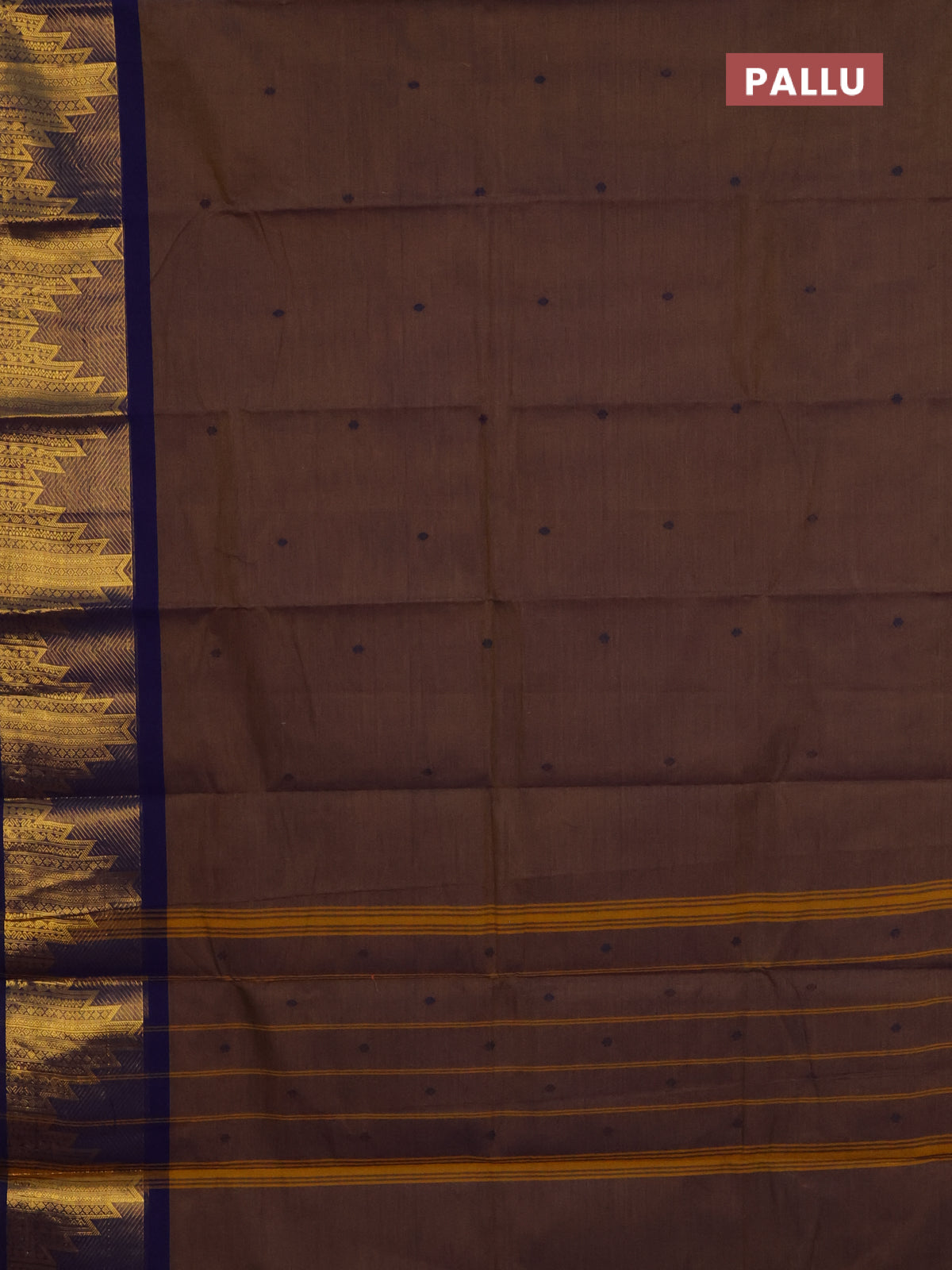 Chettinad cotton saree dual shade of dark mustard and navy blue with thread woven buttas and temple design zari woven border