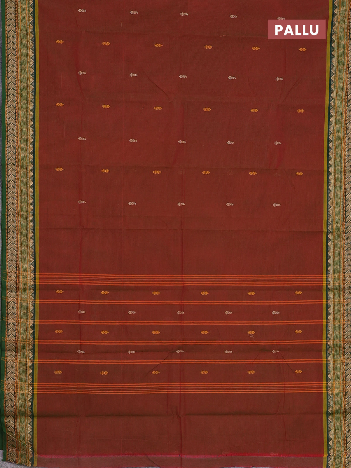 Chettinad cotton saree dual shade of maroon and green with thread woven buttas and thread woven border