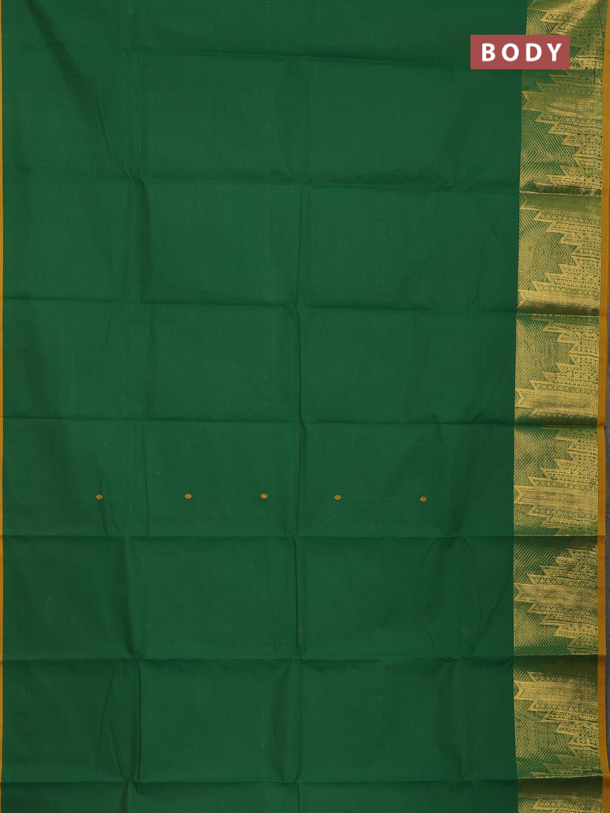 Chettinad cotton saree green and mustard yellow with thread woven buttas and temple design zari woven border