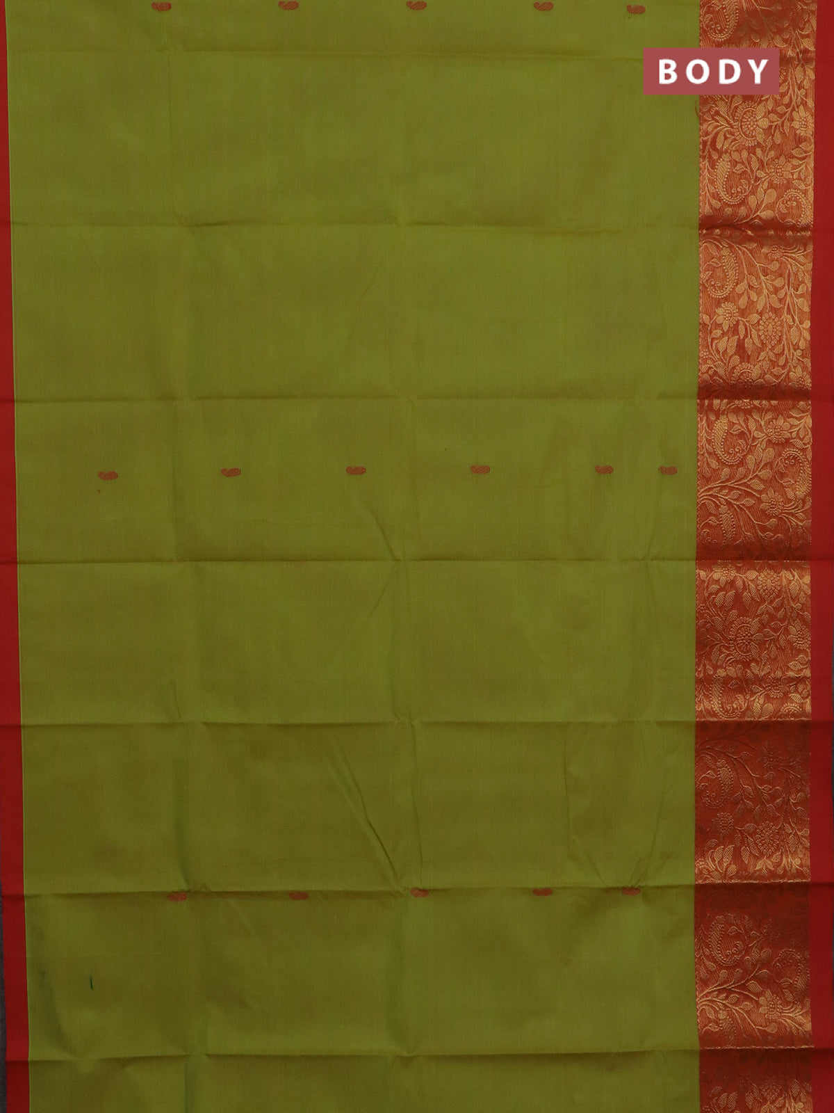 Chettinad cotton saree lime green and orange with thread woven buttas and long zari woven border