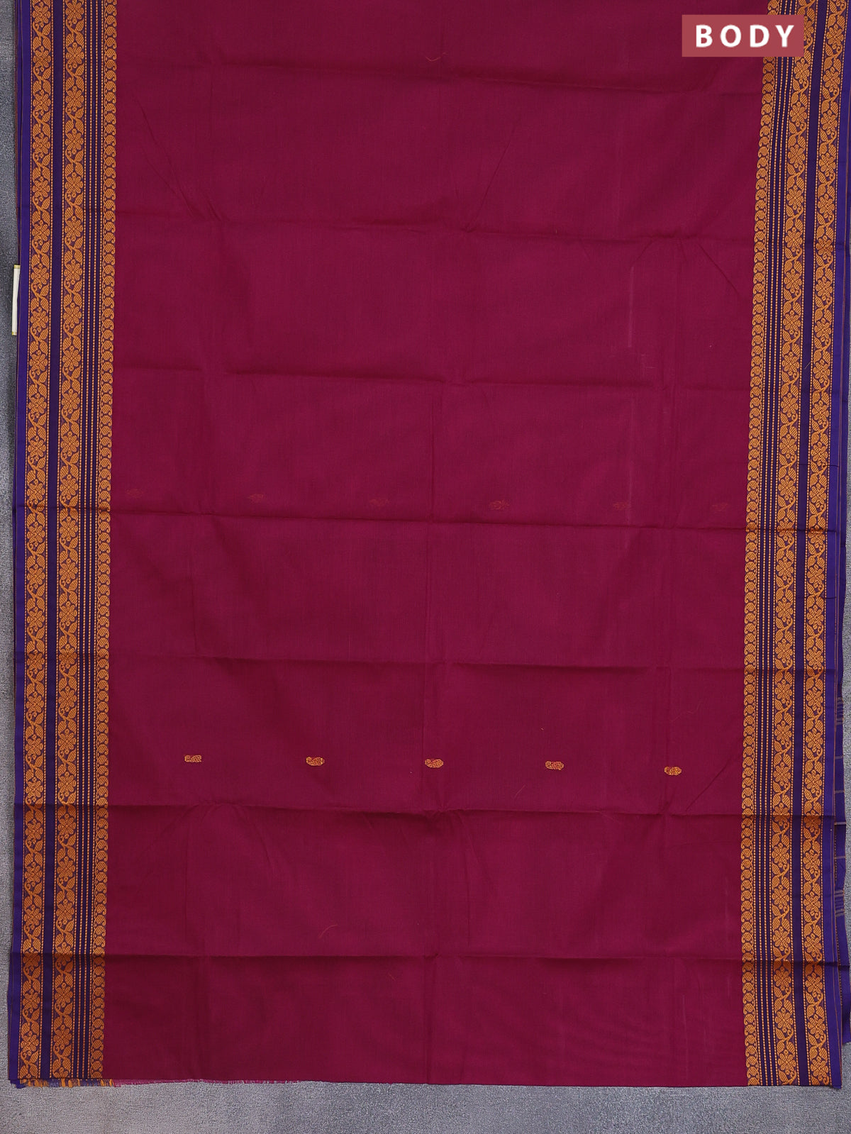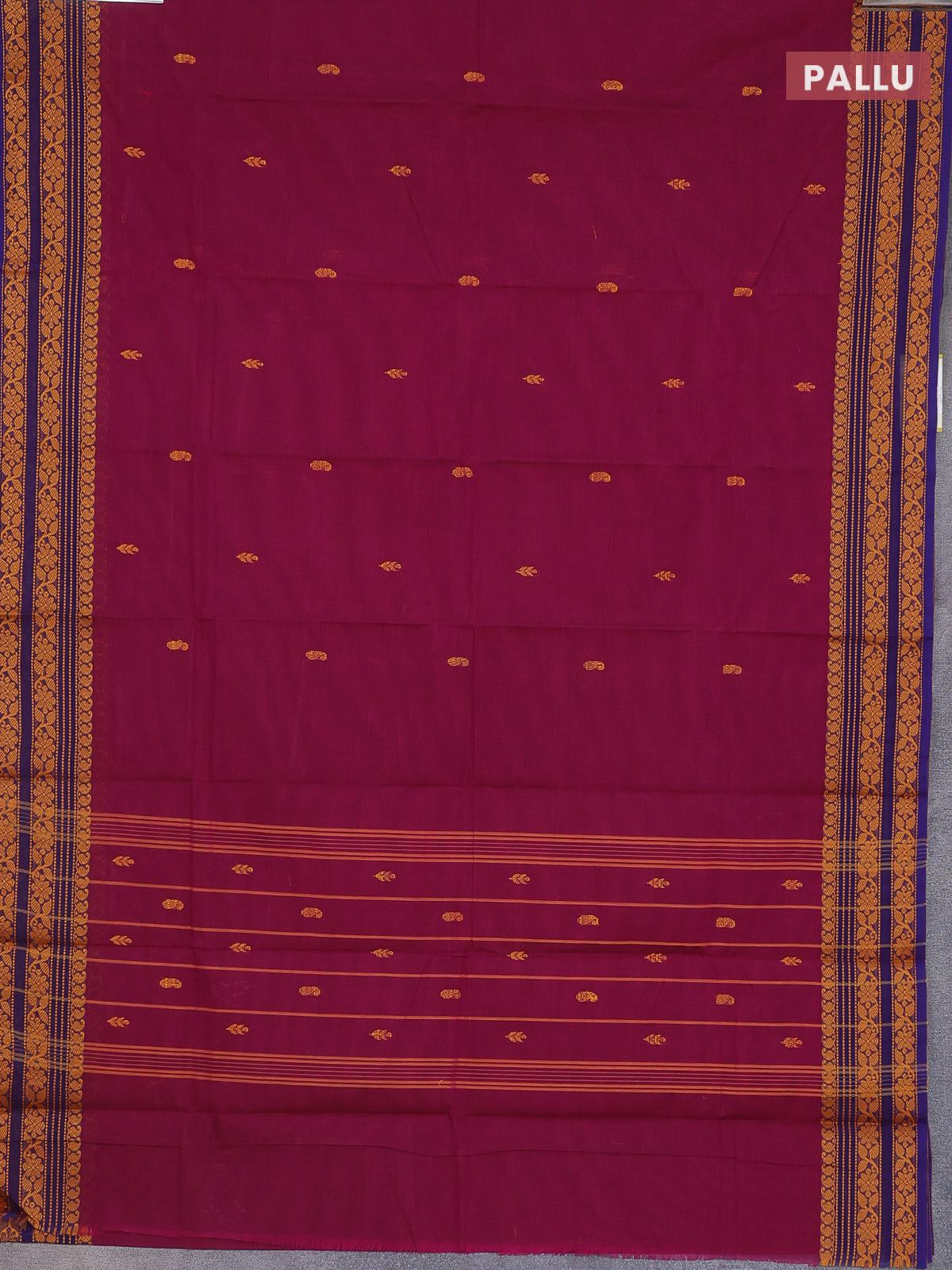 Chettinad cotton saree magenta pink and blue with thread woven buttas and thread woven border