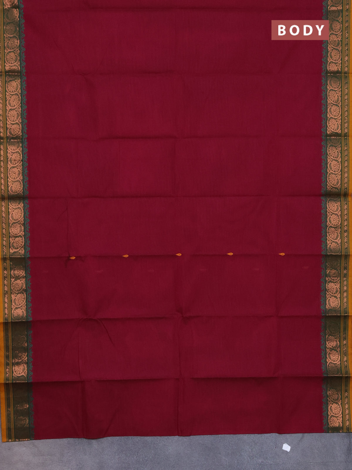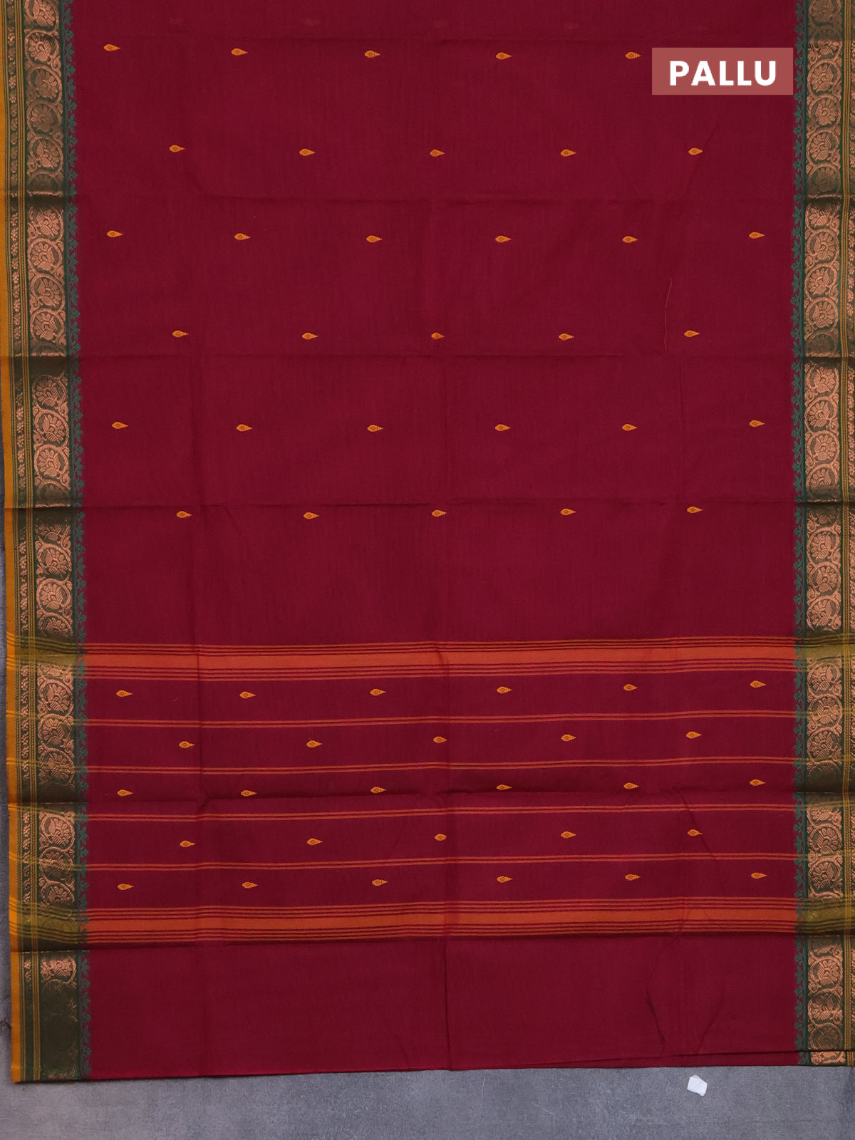 Chettinad cotton saree magenta pink and green with thread woven buttas and copper zari woven border