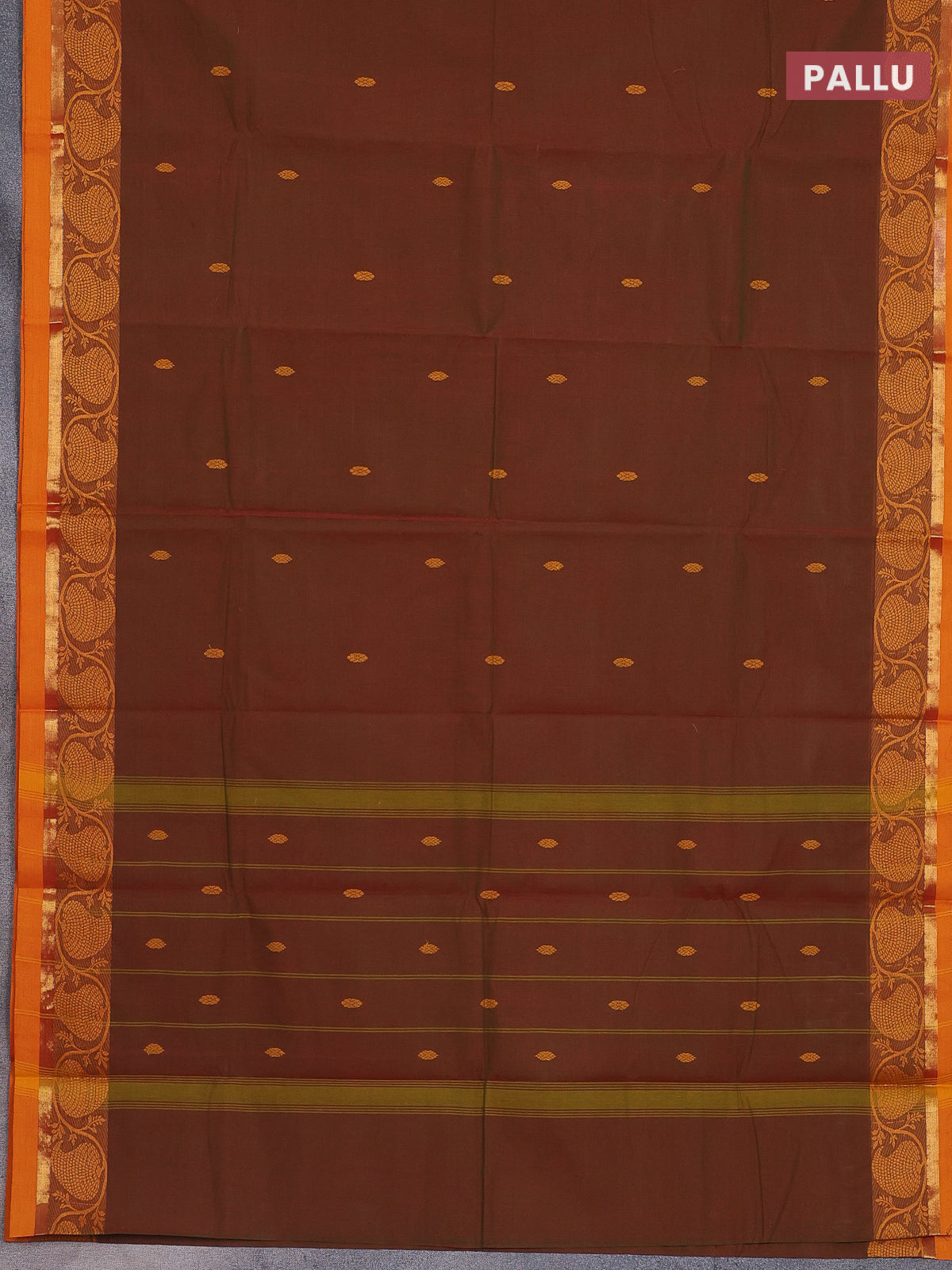 Chettinad cotton saree manthulir green and mango yellow with thread woven buttas and thread & zari woven border