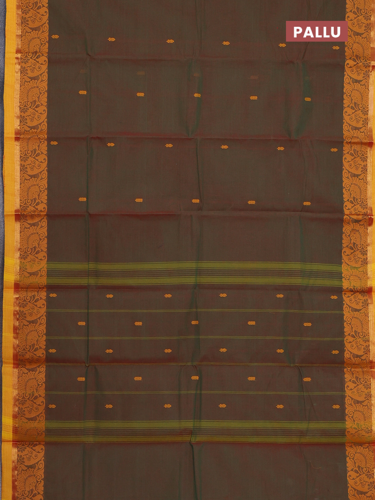 Chettinad cotton saree manthulir green and yellow with thread woven buttas and zari woven border