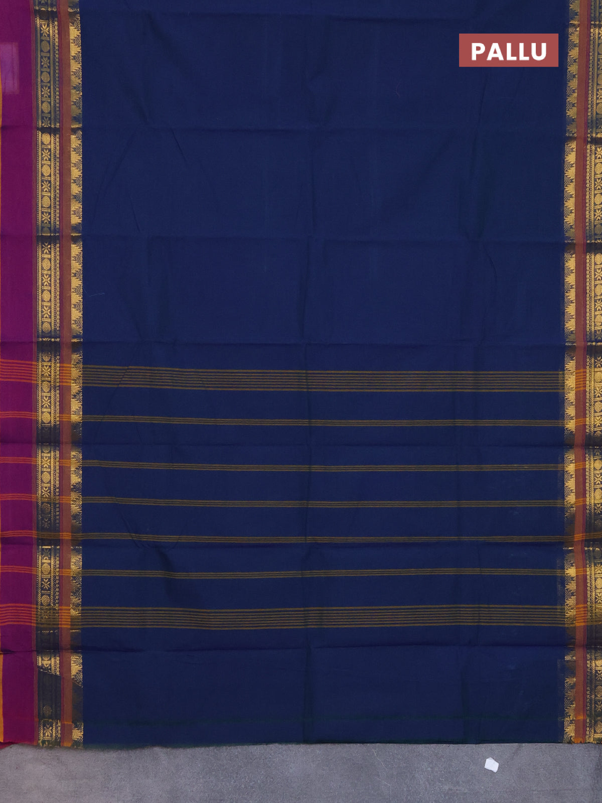 Chettinad cotton saree peacock blue and purpel with thread woven buttas and ganga jamuna border