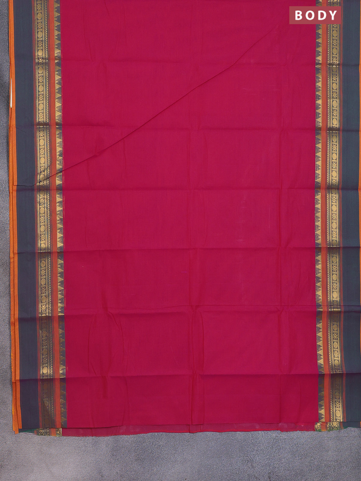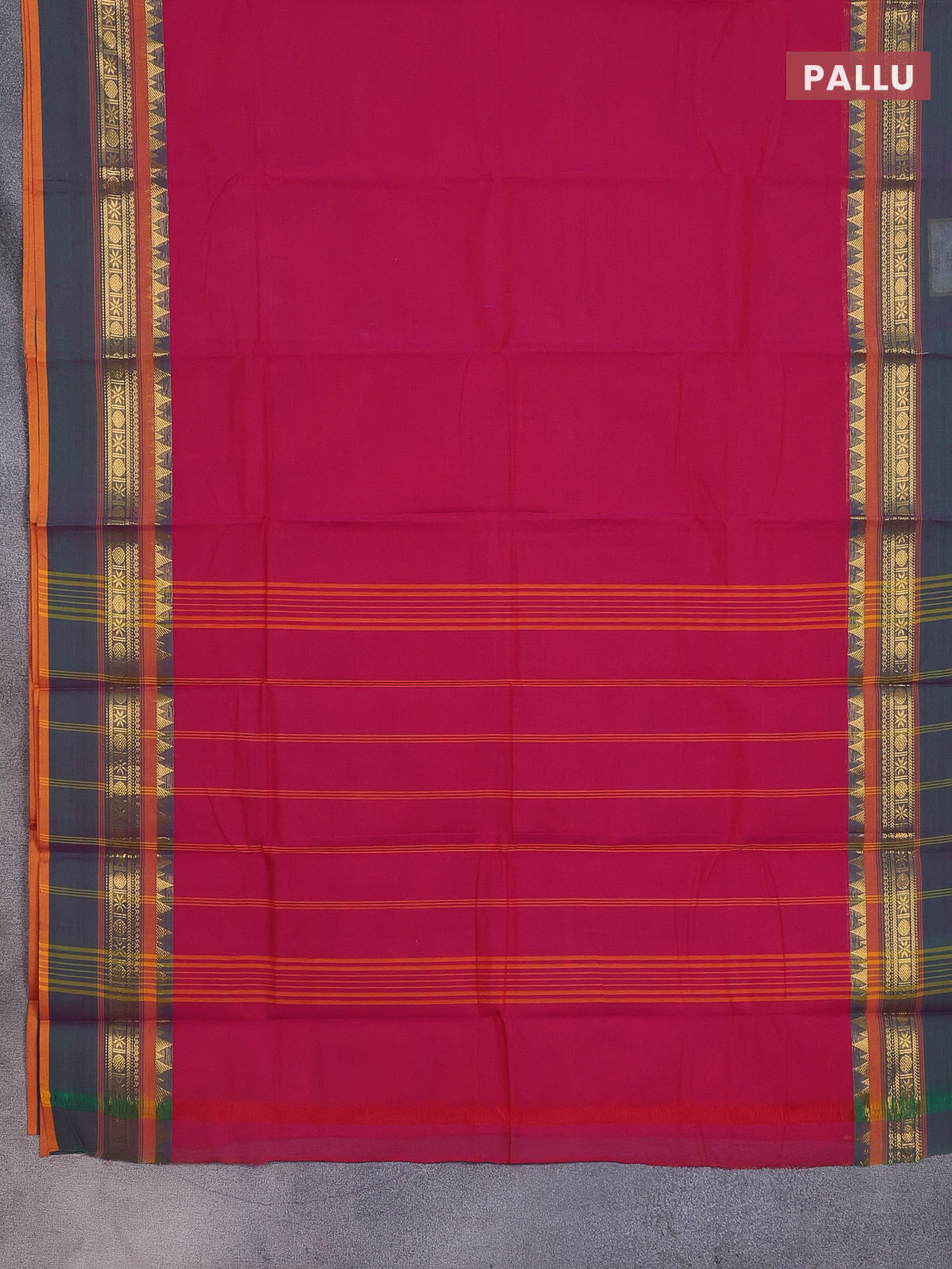Chettinad cotton saree pink and dual shade of green with thread woven buttas and temple disign zari woven border