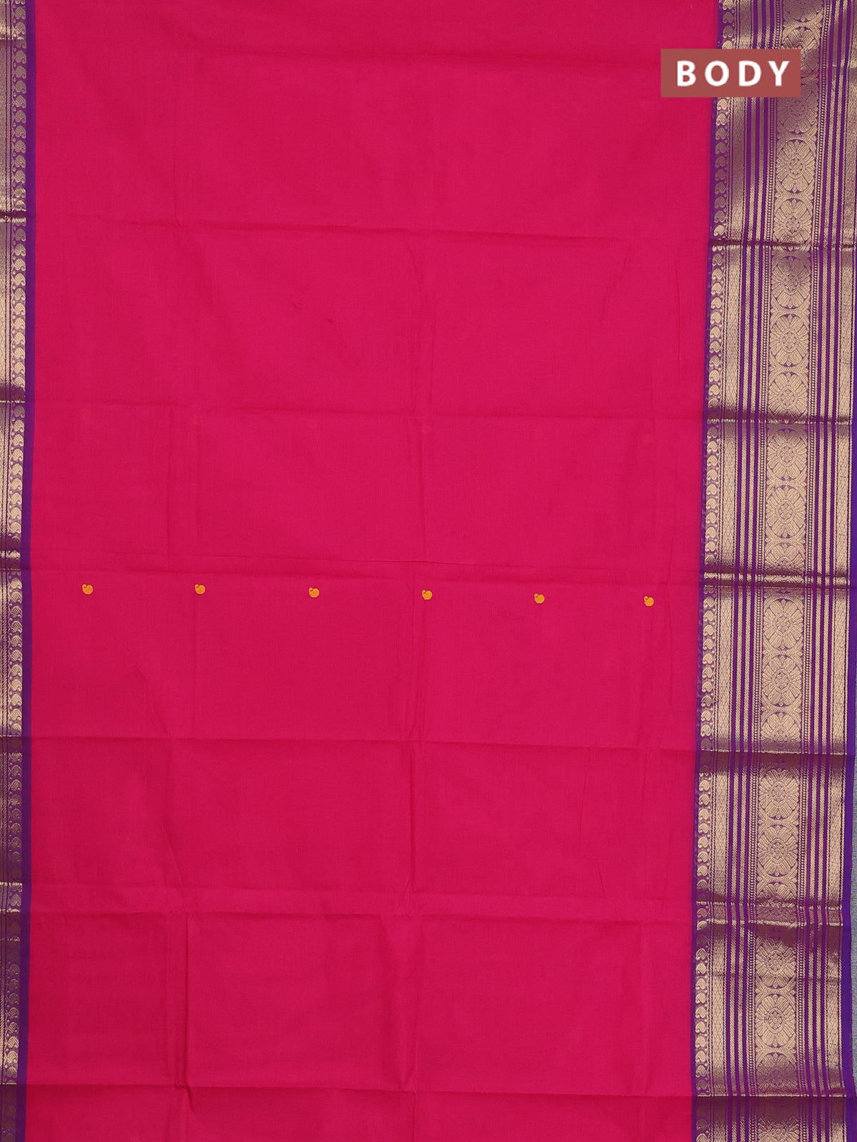 Chettinad cotton saree pink and purple with thread woven buttas and long zari woven border