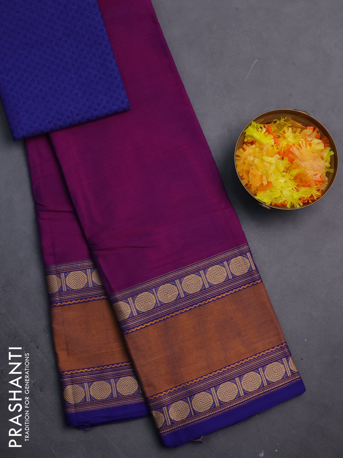 Chettinad cotton saree purple and blue with plain body and rettapet thread woven border