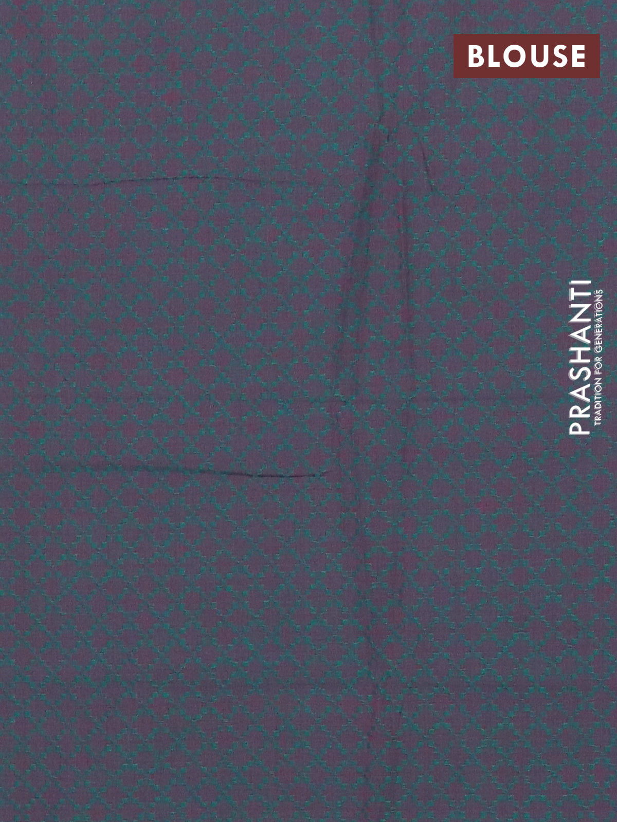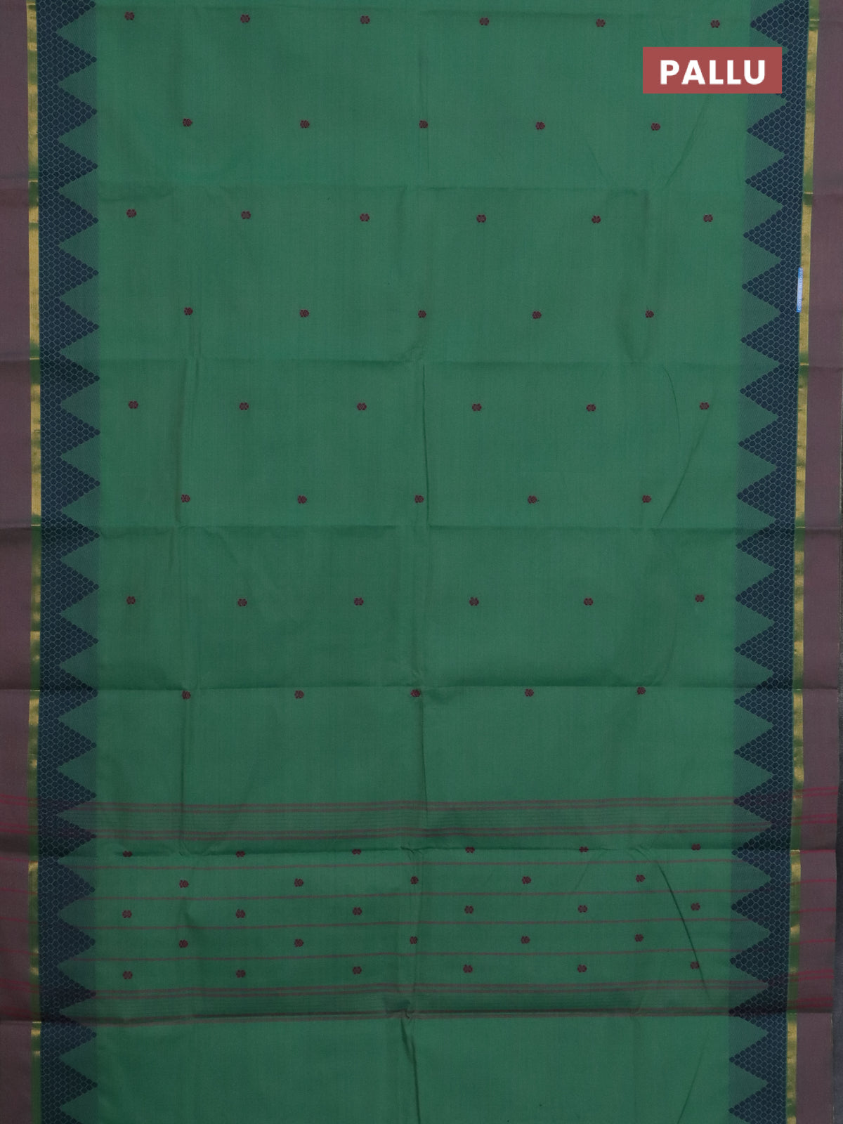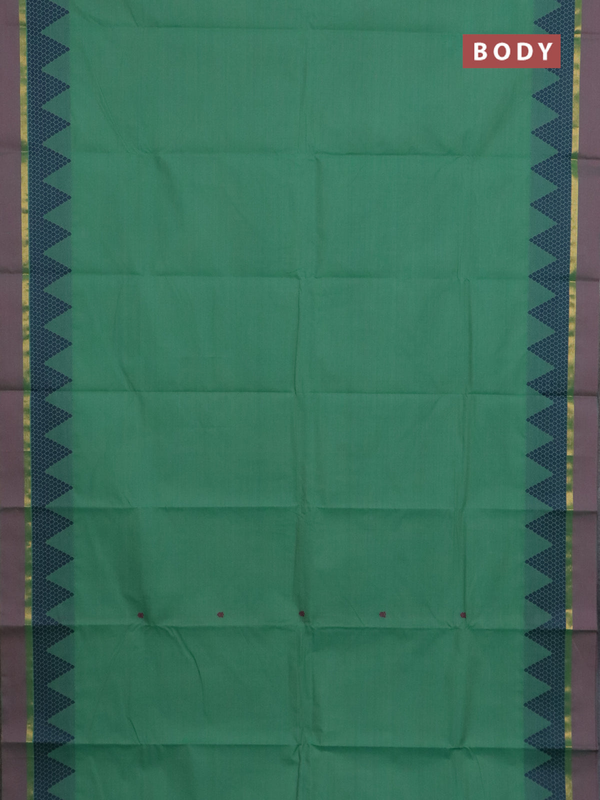 Chettinad cotton saree teal green shade and dual shade of purple with thread woven buttas and thread woven simple border