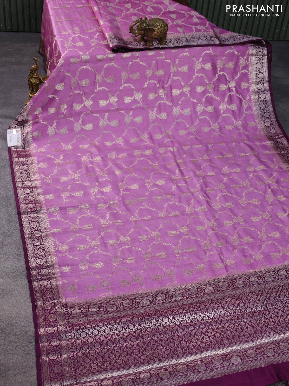 Chiniya silk saree mauve pink and wine shade with allover zari weaves and zari woven border