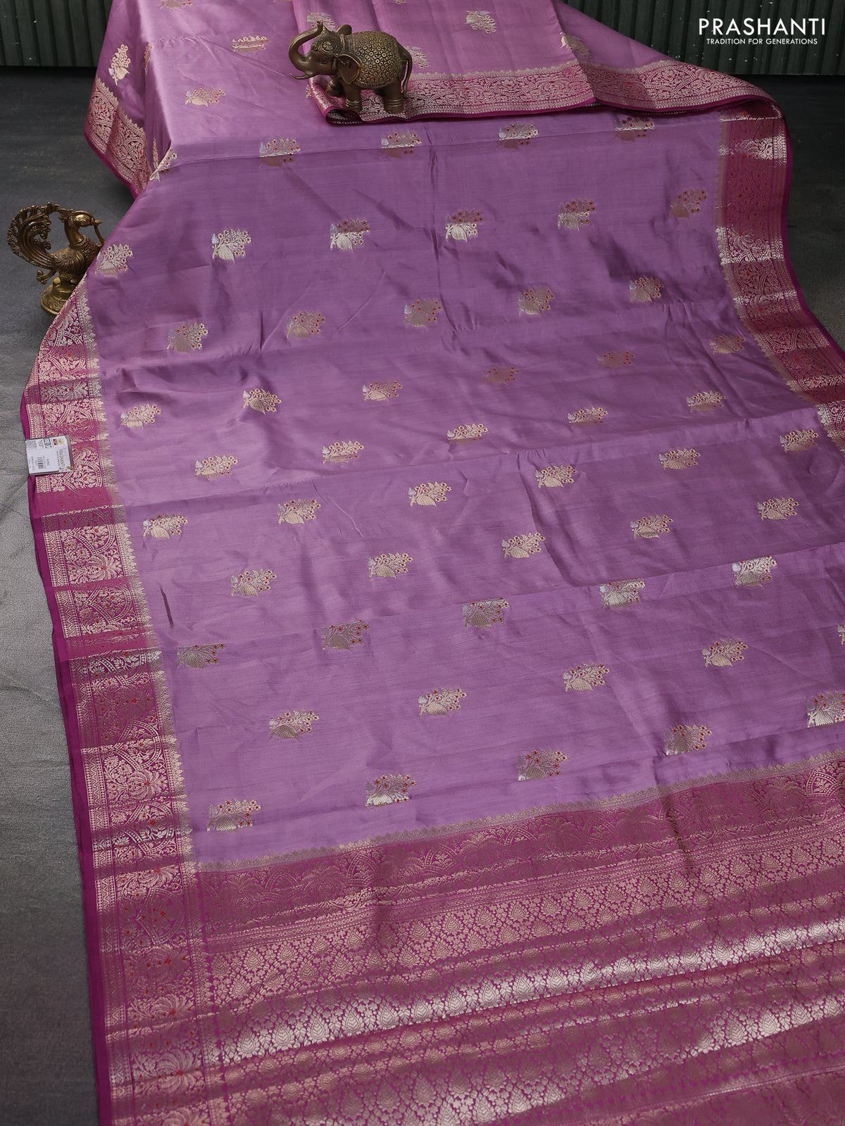 Chiniya silk saree pastel purple and magenta pink with zari woven buttas and zari woven border