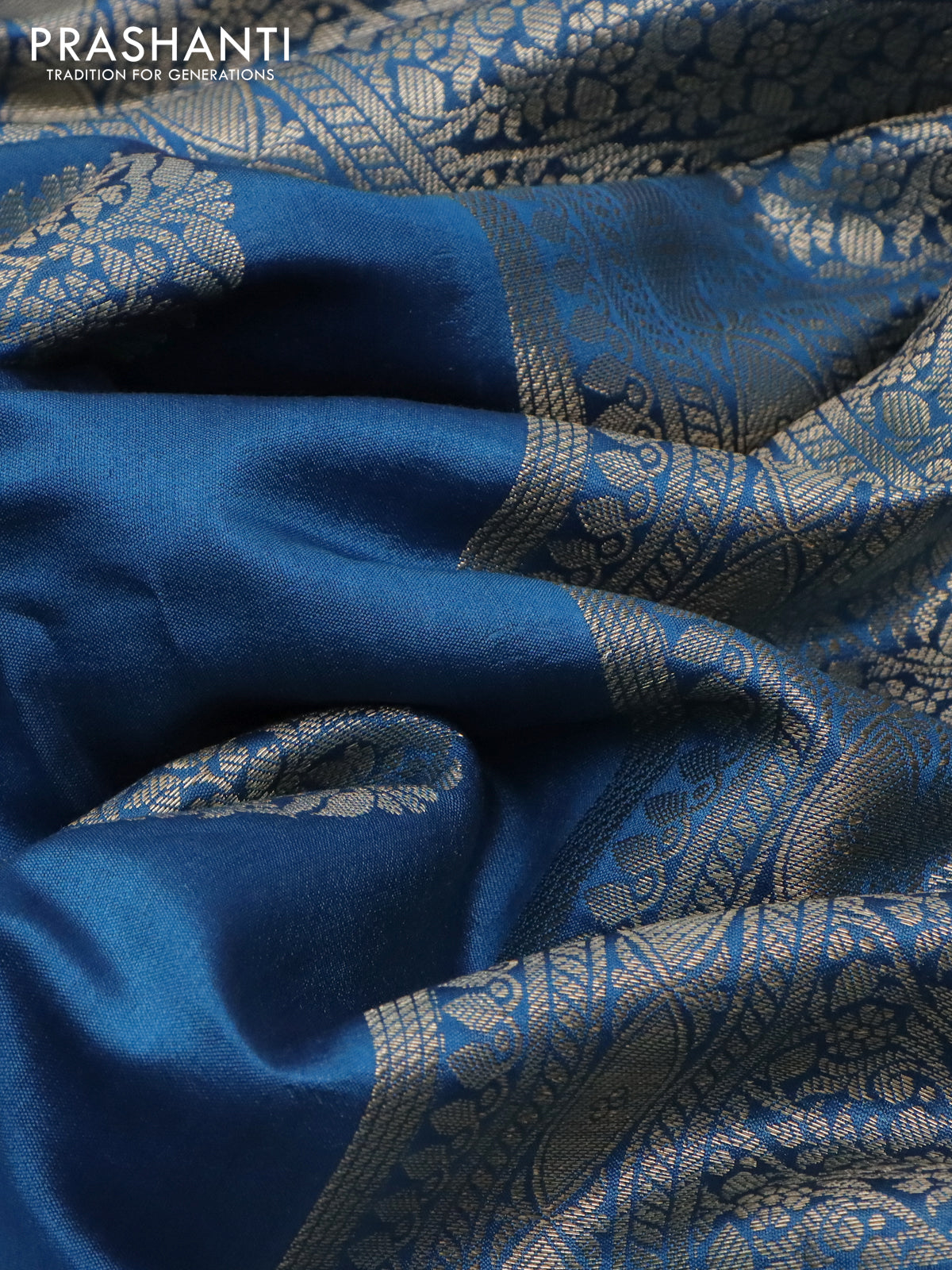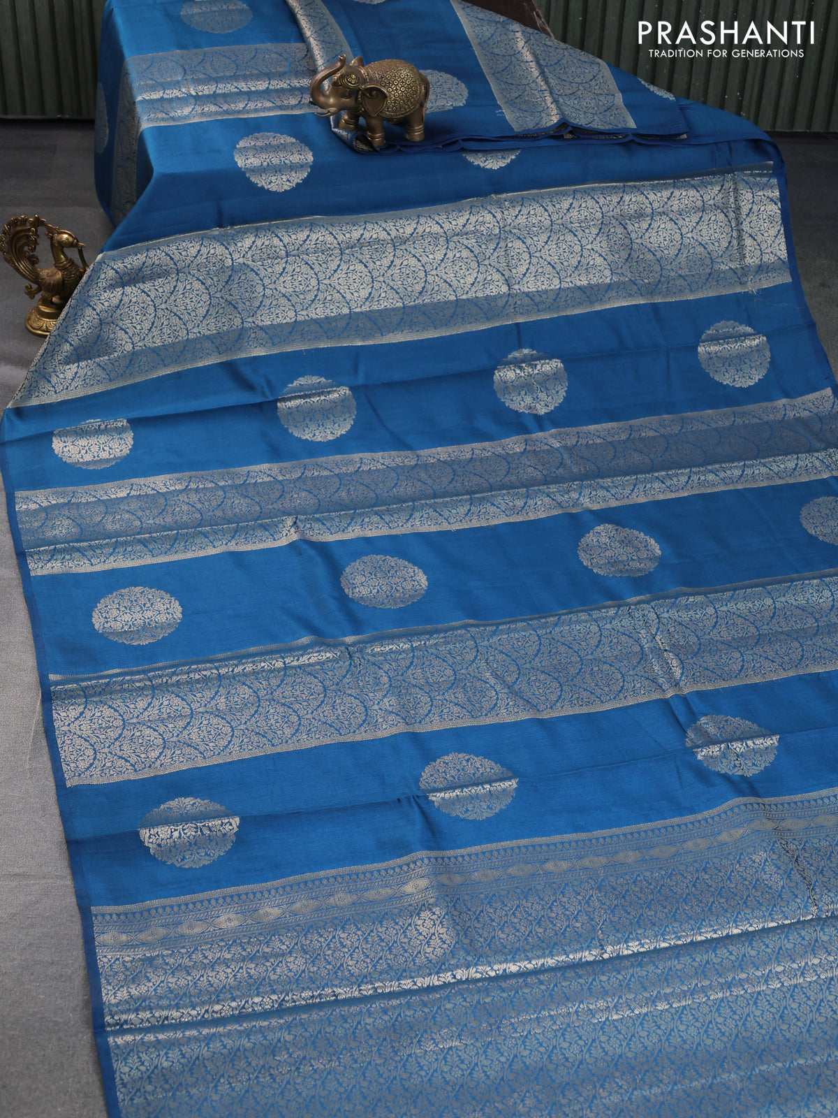 Chiniya silk saree peacock blue with allover zari weaves & buttas in borderless style