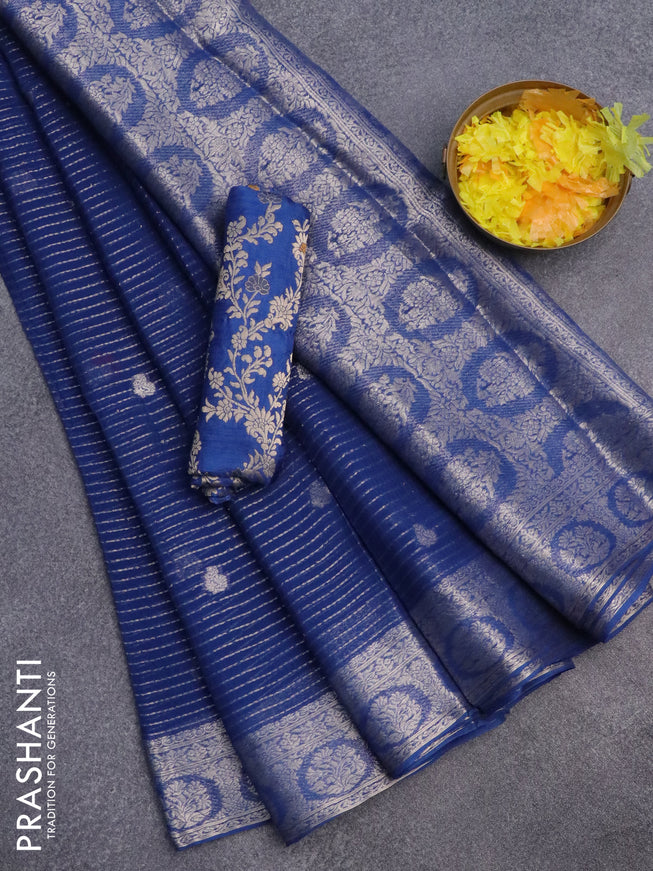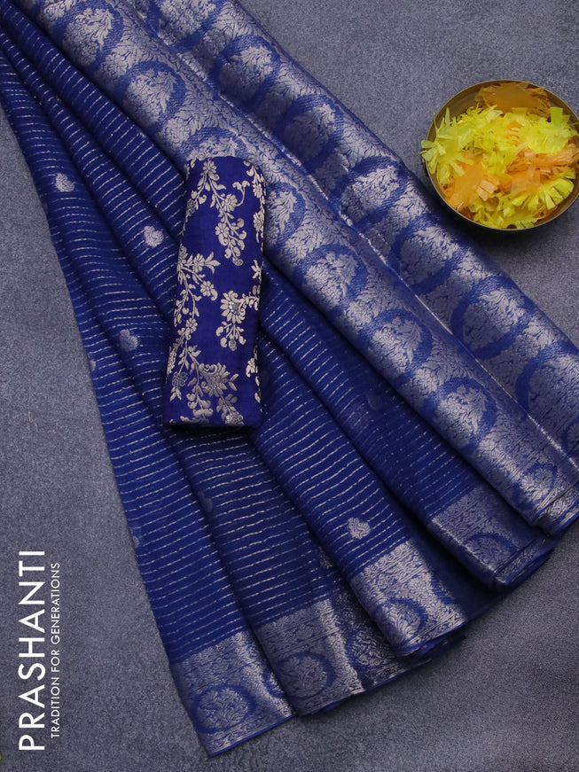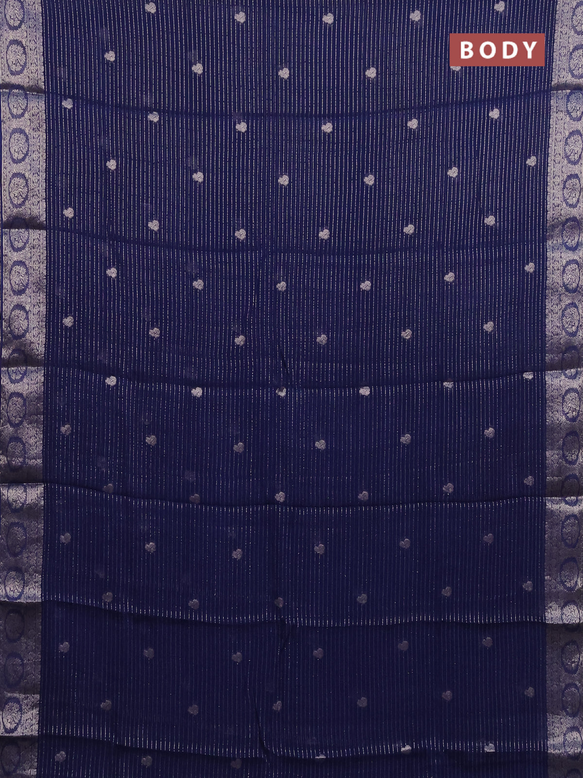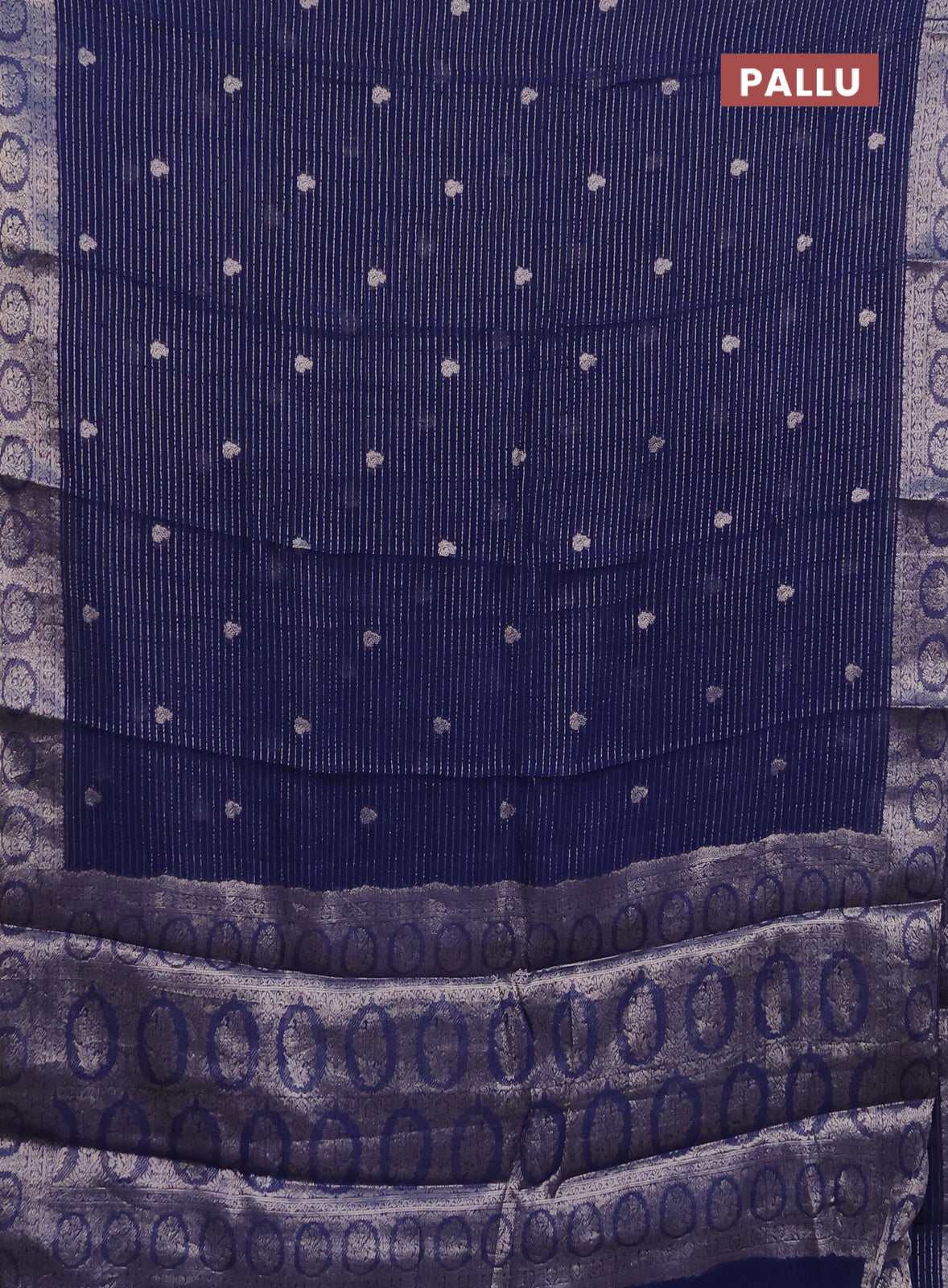 Chinon silk saree dark blue with allover zari weaves & buttas and zari woven border - banarasi brocade blouse