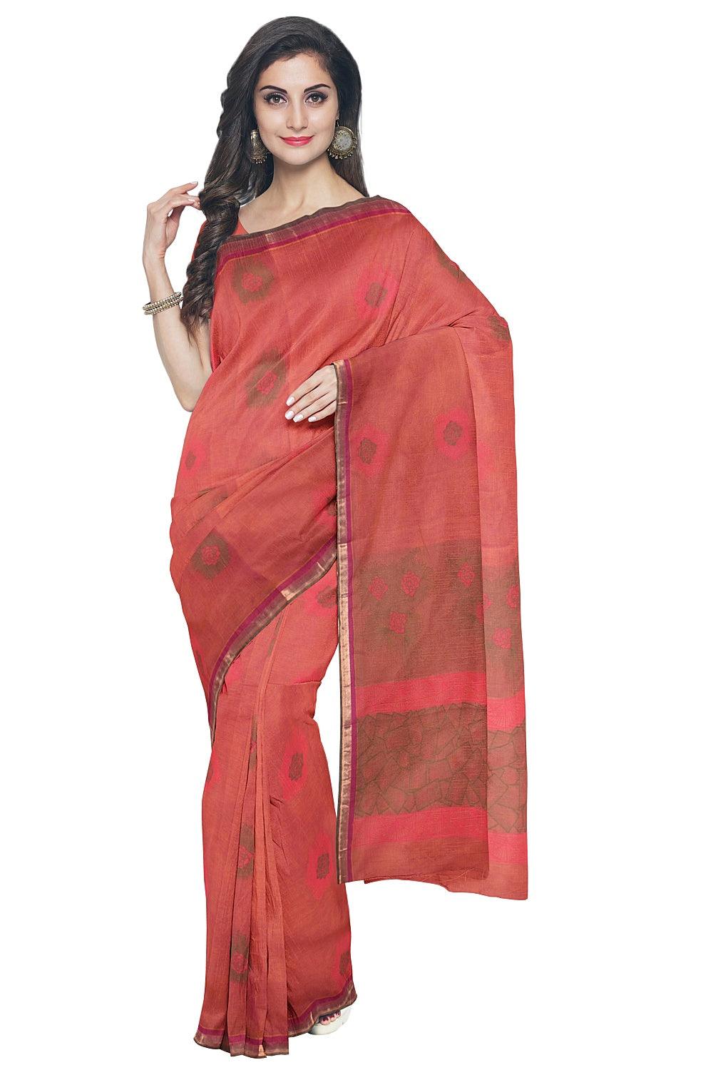 Coimbatore Cotton Butta Saree - Orange