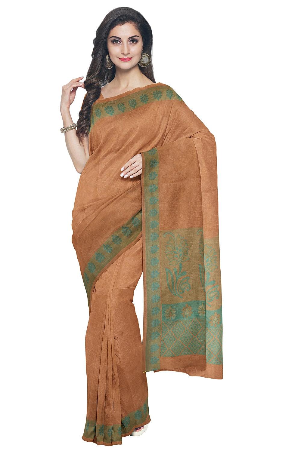 Coimbatore Cotton Emboss Saree - Sandal