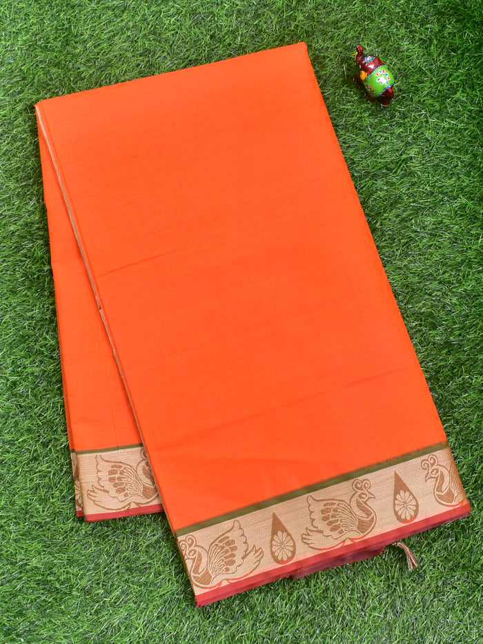 Coimbatore Cotton Orange Emboss Saree with Thread Woven Border