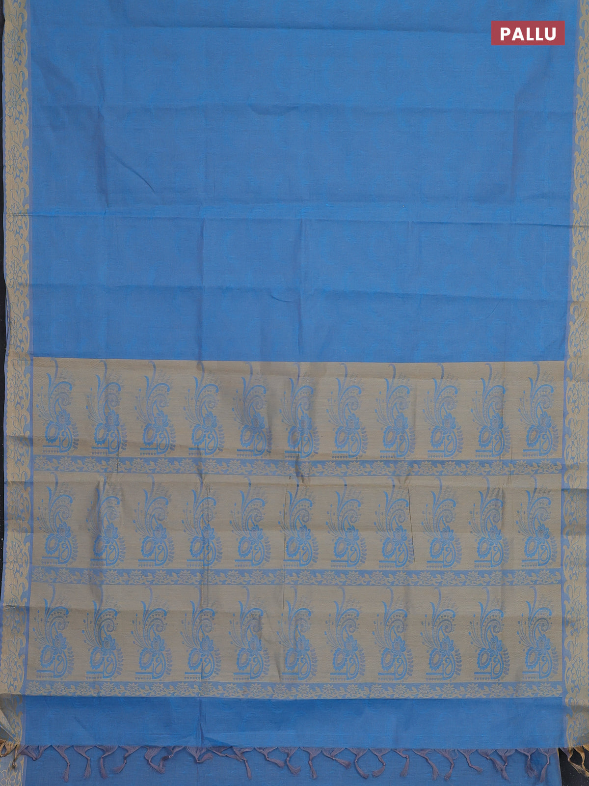 Coimbatore cotton saree blue with allover self emboss and thread woven border